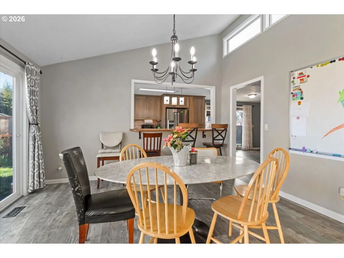 Listed below appraisal value! Well-designed one-level 4 bedroom, 2.5 bath home featuring an efficient and functional floor plan, priced below appraisal value. The kitchen offers a breakfast bar and opens seamlessly to the dining area and sunken living room, complete with a cozy wood-burning fireplace—ideal for everyday living and entertaining. A vaulted bonus room provides flexible space and could serve as a second living area, home office, or potential separate living space with modifications. Situated on a corner lot with a large RV pad. Enjoy outdoor living on the east-facing patio with a pergola equipped with electricity, plus a fully fenced yard. Property is being sold AS-IS.