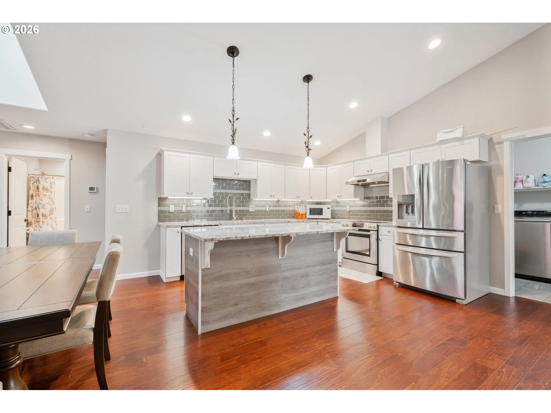 Welcome home to this beautifully maintained newer construction 3-bedroom, 2-bath featuring a great room concept with an additional vaulted front living room that adds space and charm. The custom kitchen is a true standout with granite countertops, stainless steel appliances, a massive island perfect for entertaining, and upgraded pull-out cabinetry for maximum storage and functionality.The spacious primary suite features a walk-in closet, double sinks, and a tiled walk-in shower. Cozy up in the living room next to the propane fireplace, or step outside to enjoy the fully fenced backyard complete with a covered patio—perfect for year-round outdoor living.Additional highlights include an oversized driveway with room for RV parking, a storage shed, and a low-maintenance yard ideal for easy living. This home checks all the boxes—don’t miss your opportunity to make it yours!