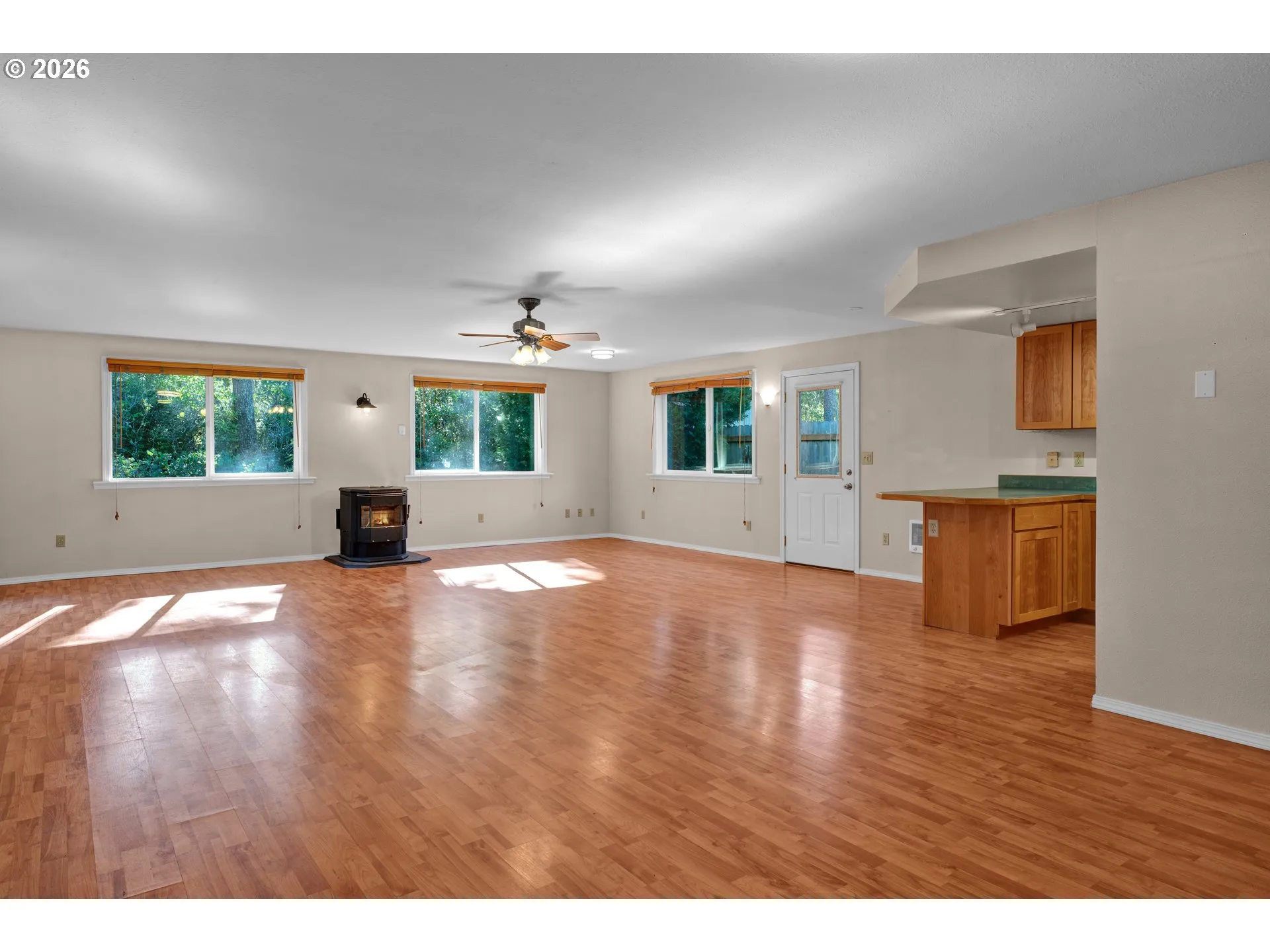 Charming and well-maintained 3-bedroom, 2-bath home offering 1,459 SqFt of comfortable living space in a peaceful Florence setting. The spacious living room features a cozy pellet stove, creating a warm and inviting atmosphere year-round. A glass slider opens to a temperature-controlled attached greenhouse — a dream for gardeners and the perfect sunny retreat for morning coffee or afternoon relaxation.The kitchen offers a convenient breakfast bar and pantry, flowing easily into the main living areas for everyday living and entertaining. The primary bedroom includes its own private bath with shower, while two additional bedrooms provide flexibility for guests, hobbies, or a home office.Step outside to a fenced backyard that backs to tranquil wetlands, offering privacy, natural beauty, and a serene backdrop rarely found in town. With a new roof only recently installed this property is a wonderful opportunity to enjoy comfort, nature, and functionality all in one.