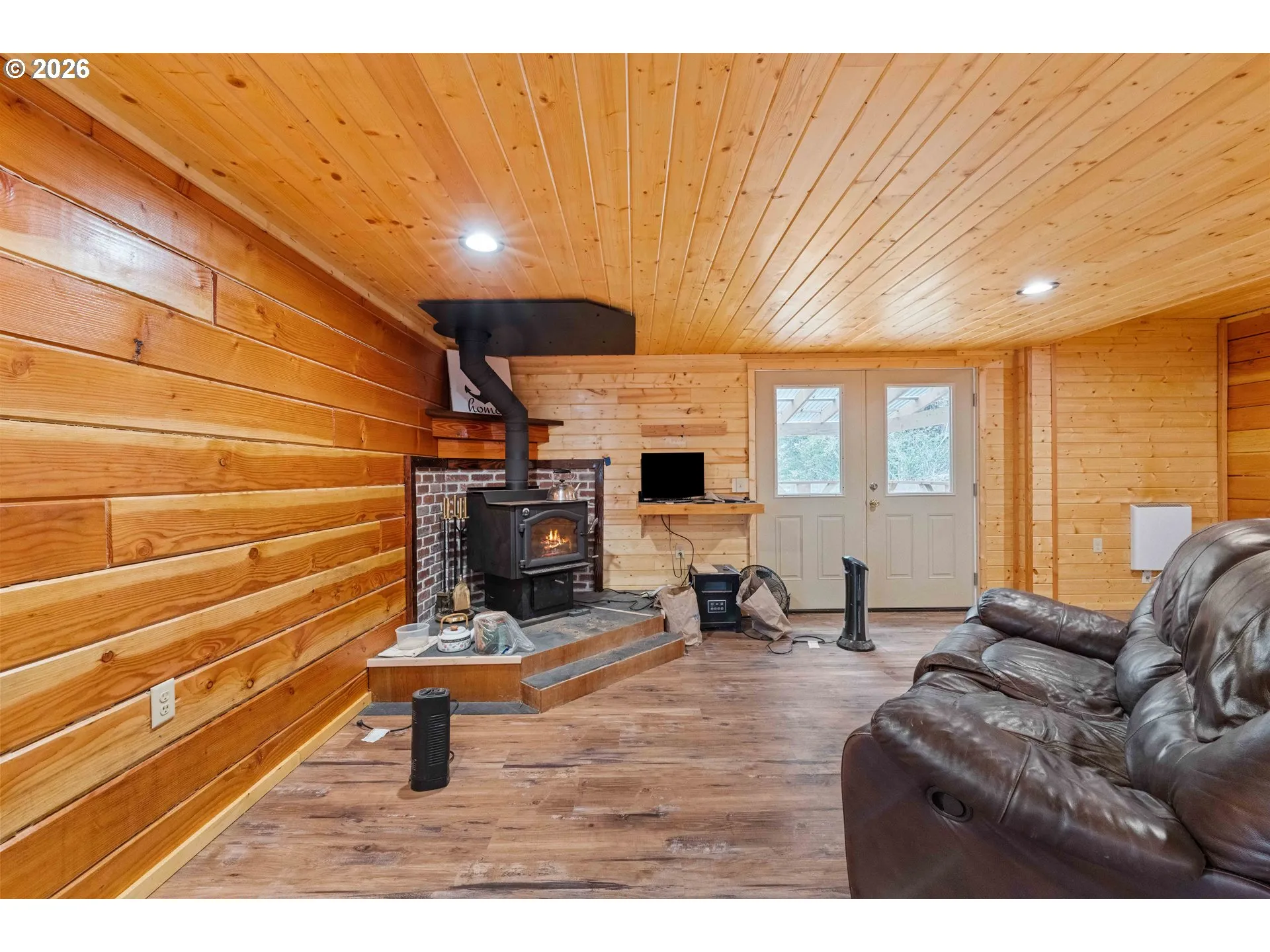 Newer construction on 2 peaceful acres with approximately 700 sq ft of covered deck space—essentially an outdoor living room where morning coffee tastes better and evenings stretch a little longer.This 2 bedroom, 2 bath home blends comfort and character with beautiful tongue-and-groove wood ceilings, recessed lighting, and a warm wood stove that anchors the open living space. The layout feels inviting and efficient, with natural wood tones throughout creating that classic Northwest cabin feel—without sacrificing modern touches.Well and septic are in place, giving you the independence and simplicity that rural living offers.The 24’ x 30’ garage with approximately 14’ eaves provides serious flexibility—room for vehicles, storage, projects, or all the gear that tends to follow country living. High ceilings mean you’re not limited.Surrounded by trees and privacy, this property offers space to breathe, space to work, and space to unwind.Buyer to be responsible for finalizing permits. A rare opportunity to step into newer construction in a quiet setting and make it your own.