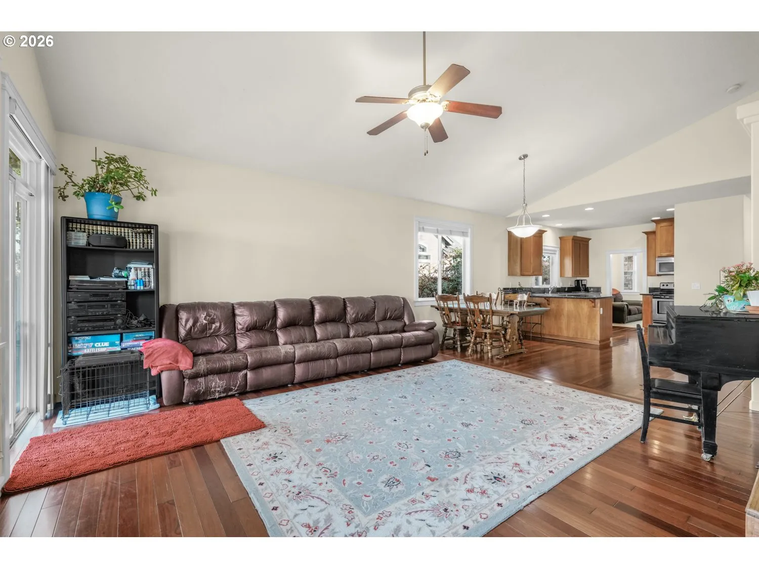 Beautiful single-level Craftsman home on a private, treed lot with stunning landscaping that creates incredible curb appeal. Relax and unwind on the inviting covered front porch, surrounded by shade trees and peaceful surroundings. Inside, you’ll find a bright, open floorplan with 9’–14’ ceilings and abundant natural light streaming through numerous large windows. The spacious living room features a vaulted ceiling and sliding doors leading to the backyard, creating seamless indoor-outdoor living. Gorgeous Brazilian cherry hardwood floors flow throughout the main living areas, adding warmth and elegance. The kitchen is designed for both function and style, offering granite countertops, an eat bar, pantry, and stainless steel appliances making it perfect for entertaining or everyday living.The vaulted primary suite is a retreat with a walk-in closet and private bath featuring dual vanities and a luxurious jetted tub. Two additional bedrooms, a dedicated office space, and a full guest bath provide flexibility for guests or work-from-home needs. The laundry room includes a convenient utility sink.Recent updates offer peace of mind and modern comfort, including full interior, exterior, and garage repainting; new carpeting in all four rooms and closets; newly tiled bathrooms; and a newly installed quiet, energy-efficient heat pump. The roof and appliances have been maintained yearly for added confidence.Step outside to a fully fenced backyard with fantastic garden beds (including 55 yards of topsoil), a deck for entertaining, and a sprinkler system. A finished 3-car garage completes the package. Located in a peaceful neighborhood within walking distance to dining, shops, and parks, and in the heart of the Yamhill Valley wine country, this home offers the perfect blend of privacy, convenience, and Northwest charm.