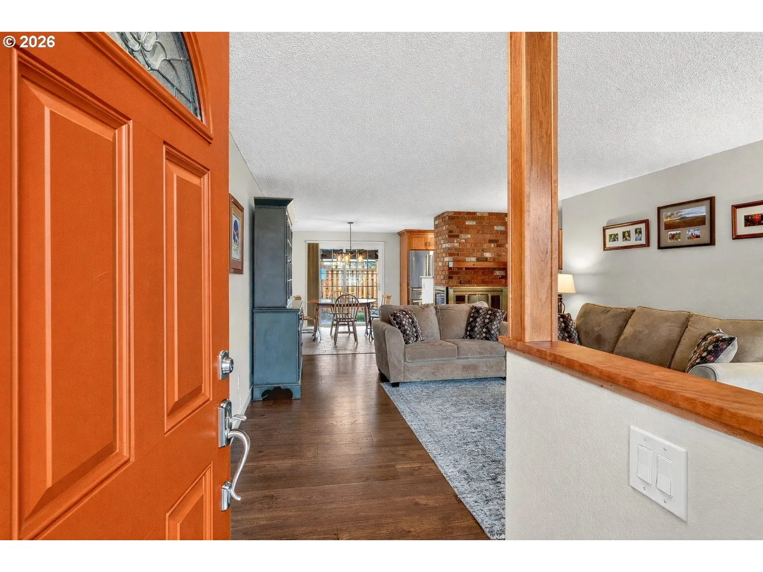 Pride of ownership abounds! Lovingly maintained! Beautifully remodeled! 1-level living at its finest! Inviting living room features a wrap-around woodburning fireplace for warm, cozy evenings while a huge bay window allows natural light to flood in during the day. Laminate flooring (pet proof, water proof, steam-cleanable, made in USA) throughout the living room, bedrooms and hallway. Tile floors anchor the kitchen, dining area and bathrooms. The remodeled kitchen is truly a standout – quartz counters, stainless steel appliances, electric range with induction cooktop, refrigerator with water and ice, tons of cabinets. A large sliding glass door blends indoor/outdoor living beautifully! The large family room has hickory hardwoods floors and provides the perfect flex space: relaxing retreat for weekend TV binges? romantic movie nights? work from home space? hobby room? endless possibilities! Outdoor living is just as impressive- fully fenced yard, a firepit with its own woodshed, a covered patio, spacious deck, bubbling rock fountain, small greenhouse with power and a storage shed. Major system updates over the past 3-5 years provide peace of mind – new gas water heater, new roof and gutters, new heat pump, new forced-air electric furnace, new driveway, and new exterior paint. Oversized 2-car garage (nearly a 3-car) includes a side door, an electric opener for one bay, freezer is included. The extra wide driveway provides extra parking for RV and weekend-warrior toys, or indulge your inner gardener and keep the raised beds. Solar panels keep monthly electric expenses affordable at an average of only $123(no additional monthly monetary expenses for the solar panels). This is a must see! A rare combination of thoughtful upgrades, efficiency, and usable space designed for comfortable and carefree living inside and out!
