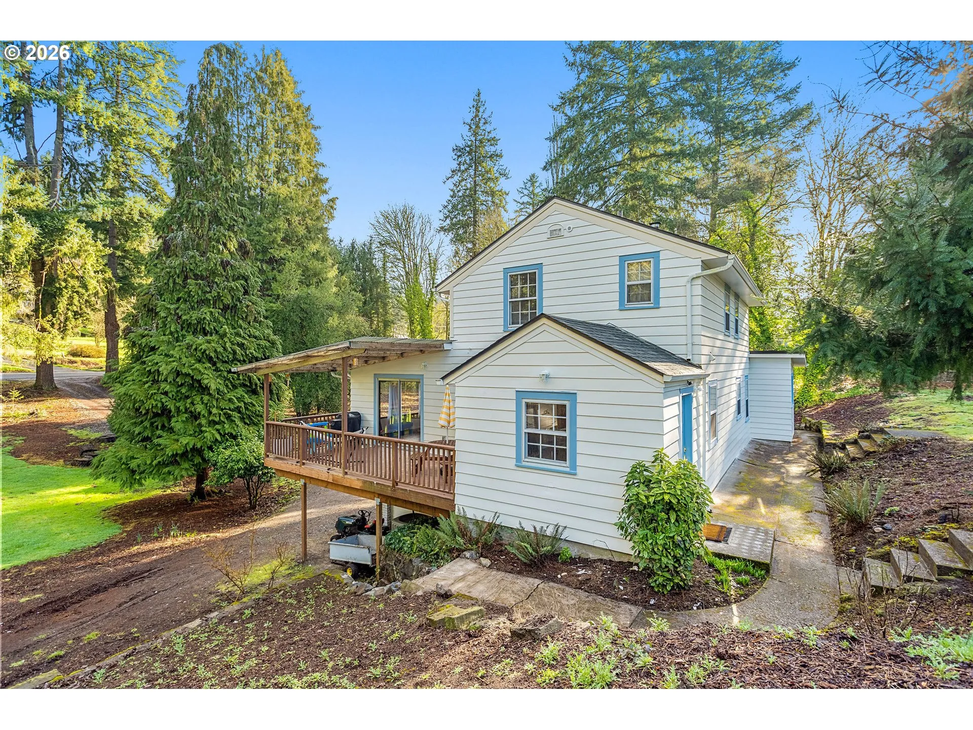 Welcome home to this thoughtfully restored property that blends original character with modern comfort, all set on a peaceful 3+ acre parcel overlooking Mint valley Golf Course. This home has been professionally updated with care, honoring its original craftsmanship and charm while bringing livability up to today’s modern standards. The main level offers a beautiful built-in fireplace in the living room, formal dining room with custom wood French doors leading into the family room, illuminated with large windows bringing in beautiful natural light. The family room flows into the kitchen, or through sliding doors out onto the top deck overlooking the property. The main level also highlights the stunning butlers pantry space off of the kitchen, main level laundry and full bathroom. Upstairs you will find three additional bedrooms and another full bathroom. The primary bedroom has stunning vaulted wood ceilings and brand new tastefully updated bathroom. The lower level has so much potential with exterior access, workshop space, etc. Outside, the property truly shines with two large, level open areas connected by a short trail and backing to Clark Creek slough for added privacy. Raise animals, Subdivision potential, buyer to do their own due diligence.