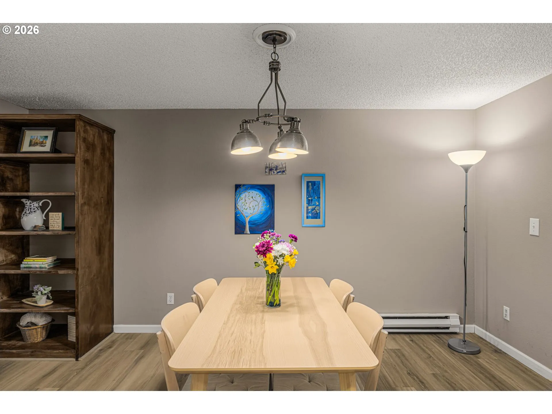 Enjoy easy one-level living in Wilsonville in this beautifully updated condo surrounded by greenery. Tucked into a quiet, tree-lined setting, this home offers a peaceful retreat with unbeatable convenience. New flooring runs throughout, complementing the refreshed kitchen with a tile backsplash and new stainless Energy Star appliances, including a built-in microwave and dual drawer dishwasher. The living room offers warmth and character with a cozy wood-burning fireplace, built-in bookcases, and a sliding glass door opening to a private balcony that overlooks peaceful trees and greenspace, and offers extra storage. Two comfortable bedrooms offer great closet space, and the home includes the convenience of an in-unit washer and dryer. Located just minutes from shopping, dining, parks, and the town center, this home also includes a dedicated parking space and access to community amenities such as a fitness center, weight room, and pool. The HOA covers water, commons, exterior maintenance, grounds maintenance, insurance, sewer, and trash.