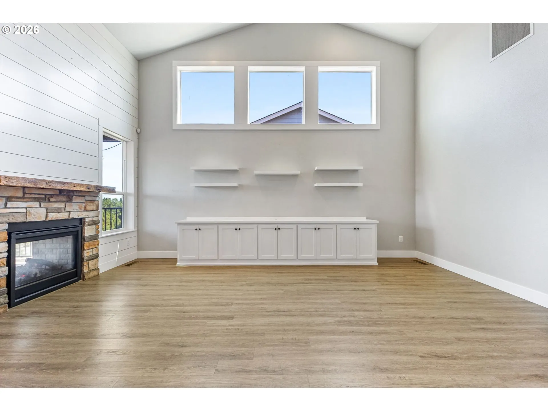 Enjoy stunning Mt. Hood views from this beautiful home designed for both comfort and entertaining. The main level offers a generous primary suite with a large walk-in closet and spa-style en-suite bath, plus a second bedroom and a chef-inspired kitchen that opens to a light-filled great room. An expansive deck captures breathtaking sunrise-to-sunset scenery. A dual-sided fireplace seamlessly connects the indoor living space to a covered outdoor lounge, creating an inviting indoor-outdoor flow.