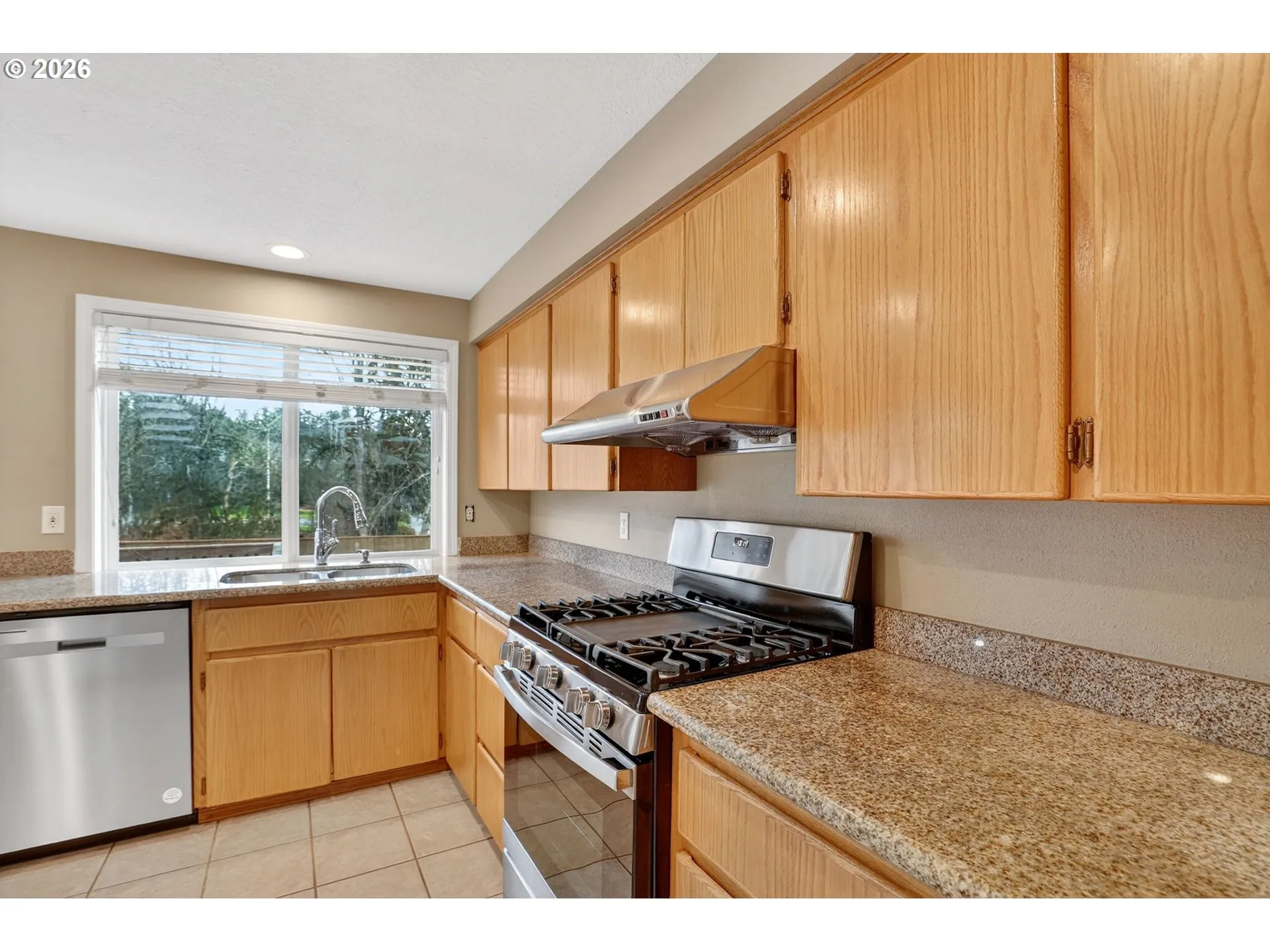 Situated on the back side of a serene, quiet common area and on a desirable corner lot, this beautifully designed 4-bedroom, 2,092 sq ft home offers a rare combination of privacy, functionality, and inviting living spaces. The upper level features a spacious primary suite complete with a large ensuite bath, a walk-in closet, stand alone shower and water closet (new toilet in 2018). Two additional upstairs bedrooms share a convenient Jack-and-Jill style bathroom, ideal for family or guests. Downstairs, you’ll find a fourth bedroom—perfect for a home office or guest suite—along with a formal living room, a welcoming family room w/gas fireplace for ambience, and a well-appointed kitchen. The kitchen includes a charming bay window nook, creating a bright and cozy space for everyday meals, updates as follows: new light fixture 2022 in nook area, FS Fridge 2017, dishwasher 2023, range 2024. Utility room with washer (2017)/dryer. All new ceiling fans in the entire home 2022, HVAC with added AC was replaced in 2013. Step outside to a large back deck overlooking the peaceful common area, where you can relax and enjoy the quiet setting with no neighbors behind you. This outdoor space is perfect for entertaining or unwinding while surrounded by nature completely fenced with cedar and was new in 2018. With its thoughtful layout, private setting, and tranquil views, this home is a wonderful opportunity for buyers seeking comfort and versatility in a peaceful well established neighborhood with not much turnover. Walking distance to New Seasons, close by to Big Al’s, shopping and restaurants.