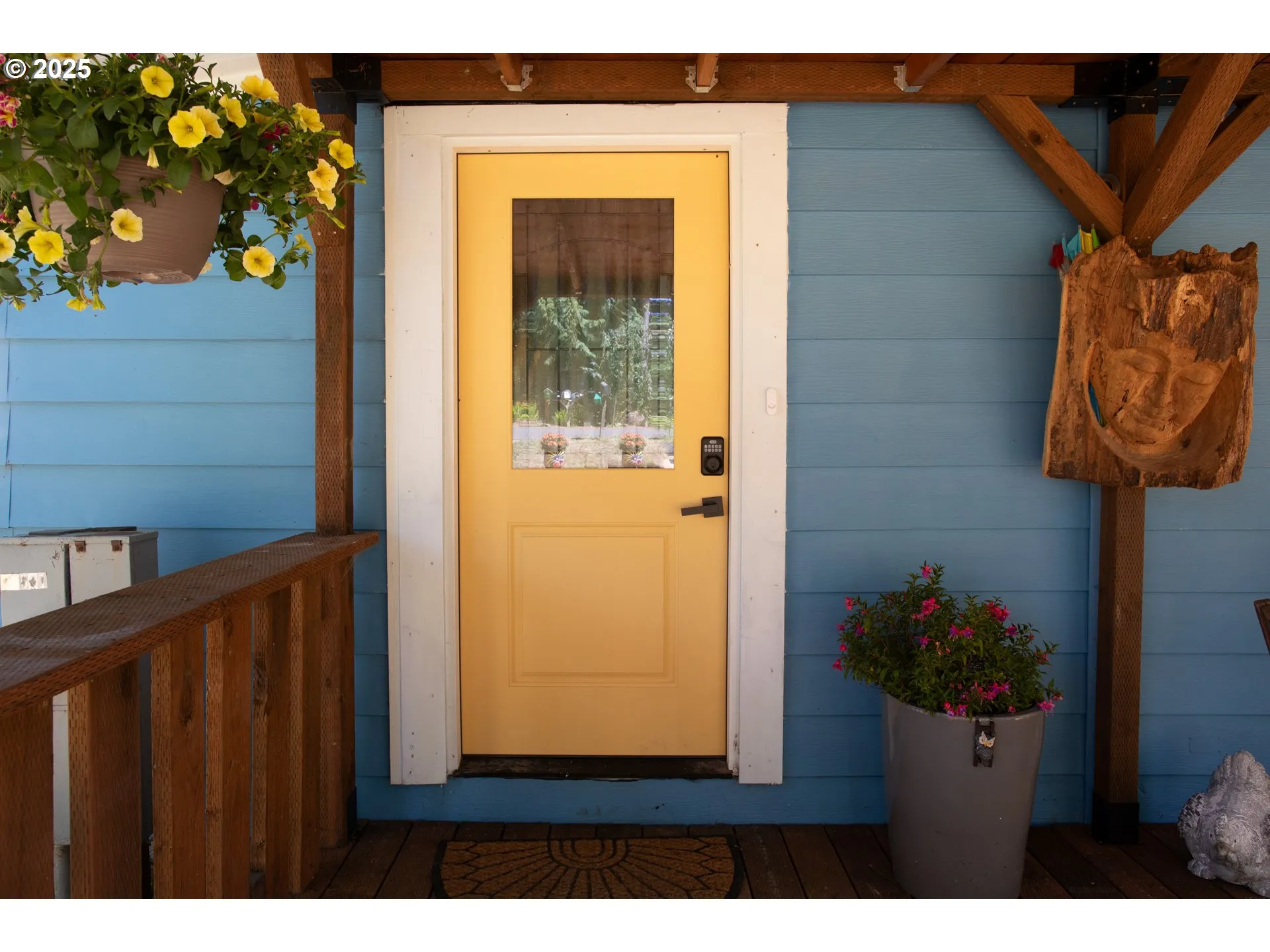 Single level manufactured home renovated from top to bottom on peaceful, quiet .4 acre with a large shop with climate controlled storage. Two spacious bedrooms and two full bathrooms featuring custom tile work shower in owners suite and a deep soaker tub in the other. All outlets replaced with modern outlets that include USB ports. Massive deck with covered front porch. Dog run. Fenced garden with chicken run around it. This home is not on the windy side but you can hear the ocean!