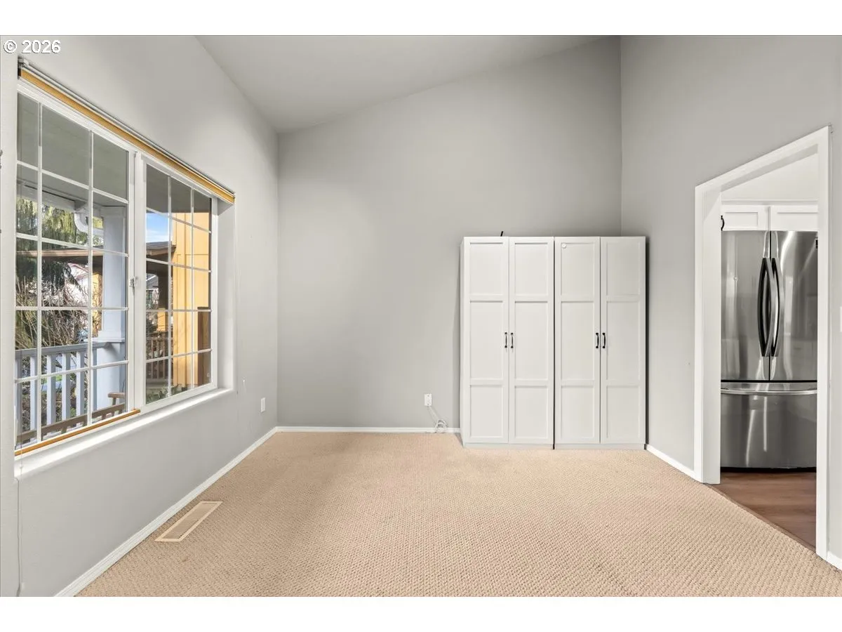 Backed to greenspace and thoughtfully updated throughout, this 3-bedroom, 2.5-bath home offers space, style, and flexibility. A covered front porch welcomes you into a great room-style floor plan with formal living and dining areas plus a versatile bonus room. Vaulted ceilings in multiple areas create an open, airy feel with abundant natural light.The kitchen features granite countertops, tile backsplash, stainless steel appliances, and ample prep space. Luxury vinyl plank flooring runs throughout most of the main level, along with a renovated half bath.Upstairs, the spacious primary suite includes a ceiling fan, walk-in closet, and an updated bathroom with luxury vinyl plank flooring and a newly added soaking tub shower. Two additional bedrooms share a Jack-and-Jill style bathroom. French doors add character to one bedroom and the bonus room, offering flexible options for a variety of needs.Major updates include a newer roof, new heat pump and furnace, and newer toilets in the half bath and Jack-and-Jill bath. The two-car garage offers built-in overhead storage and a cargo hoist for added functionality.The fully fenced backyard provides a peaceful and private setting, with a covered patio and deck for year-round outdoor living. No HOA and convenient access to Forest Grove High School, parks, playgrounds, shopping, and dining complete the package. Seller is licensed real estate agent in Oregon.