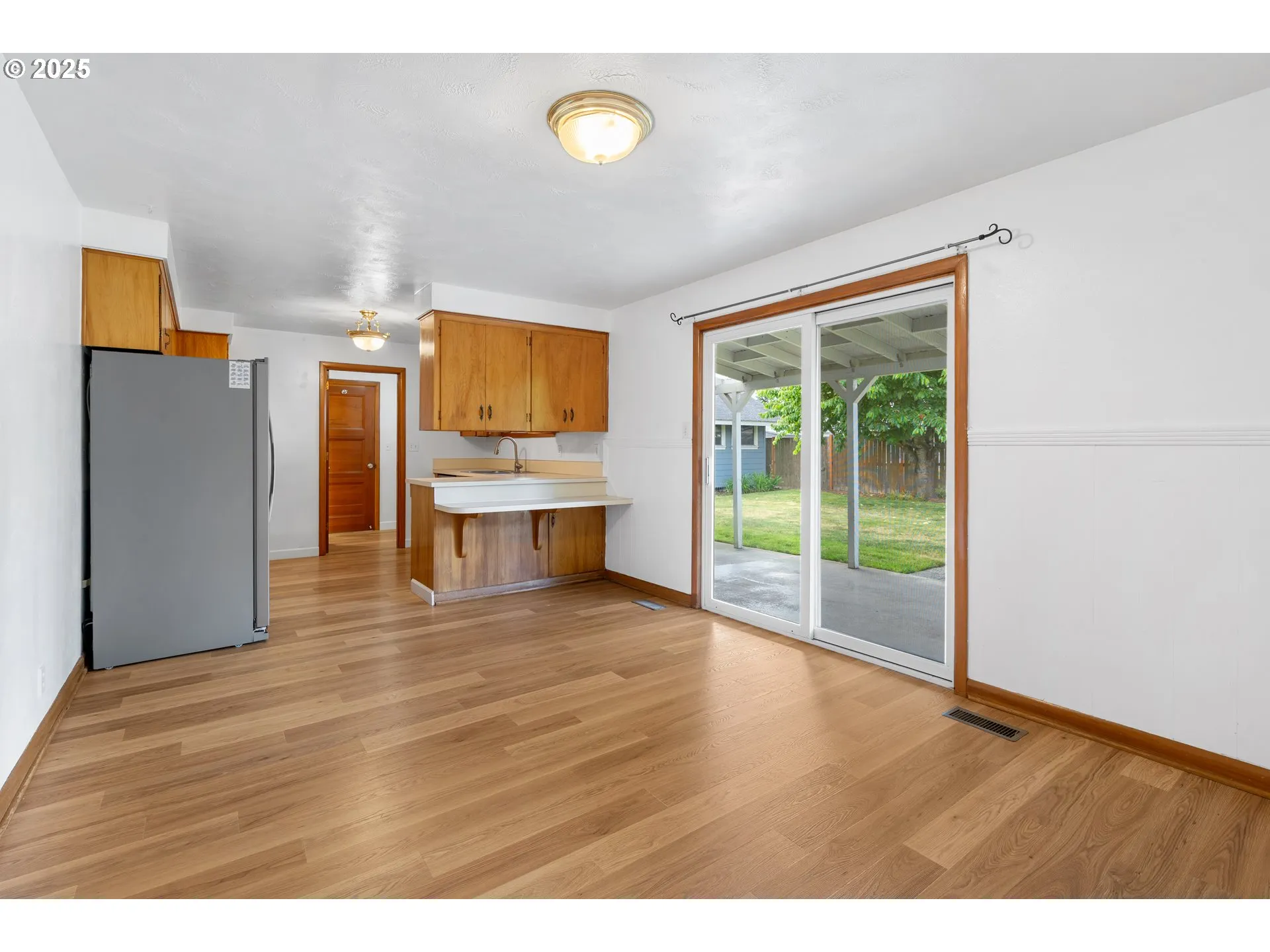 Single-level 3 bed, 2 bath home on a large flat lot with extensive paved RV or boat parking. Hardwood oak floors throughout main living areas with built-in cabinetry and a wood-burning fireplace. Primary bedroom includes an open en suite bath with jetted soaking tub and generous closet space. Functional layout with good storage throughout. Backyard is fully usable and level with a detached shed suitable for shop use, studio space, gardening storage, or workshop. Two-car attached garage. Well-maintained and move-in ready.