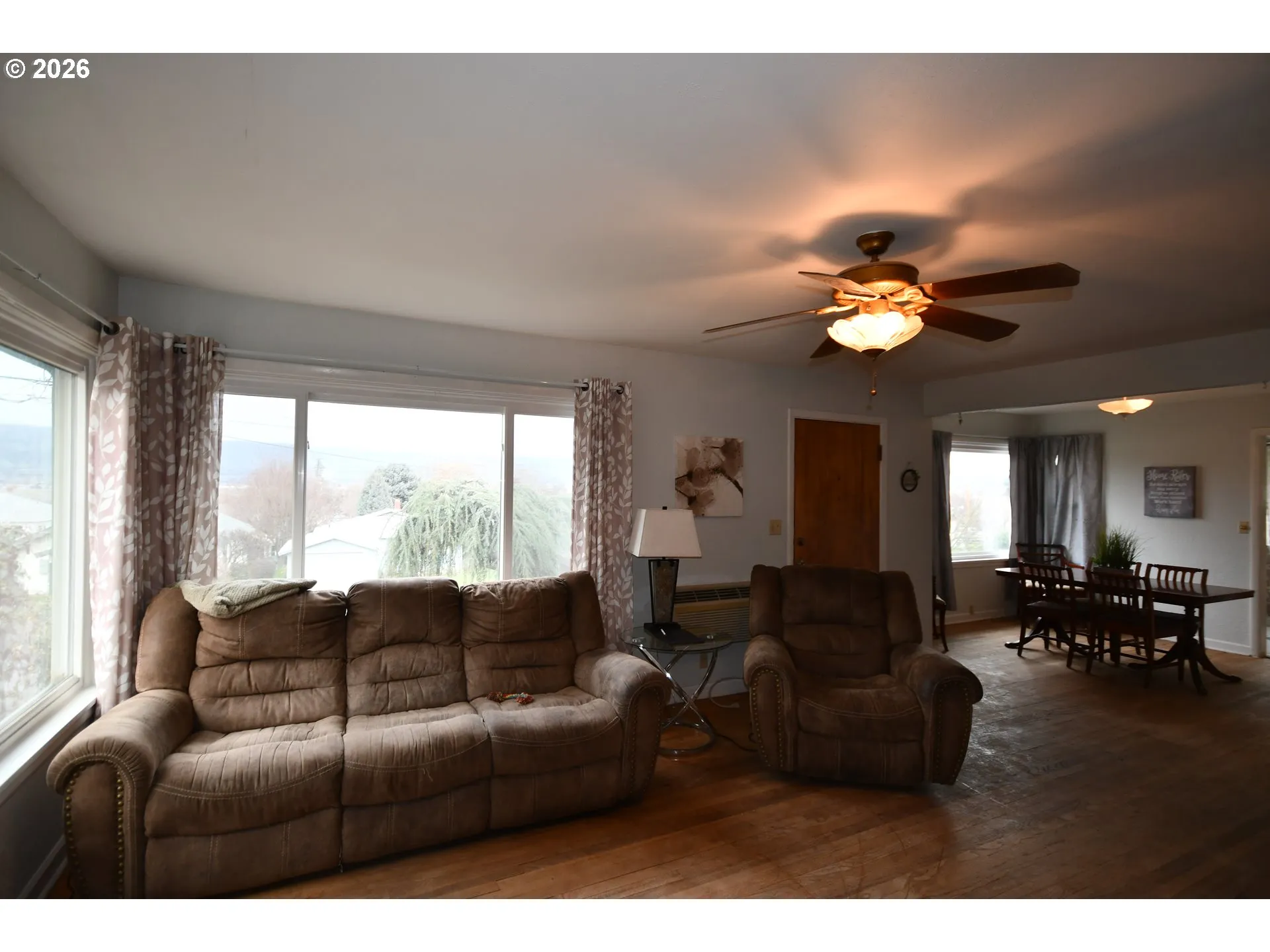 Nicely updated mid-century modern home with hardwood floors, 2 fireplaces, beautiful accent wall in the living room, 2 updated bathrooms, one with step in tile shower and the other with huge jetted tub, double sinks and great finishes. County calls room in basement 3rd bedroom and all it needs is an egress window to make it meet current code. Basement has its own separate entrance. Knotty pine walls in basement family room, with workshop and large storage area. All of this with energy efficient windows and central heat and air and a detached double garage.