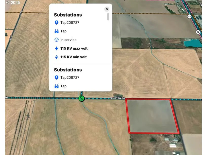 This 38 acre Exclusive Farm Use (EFU) zoned farm property primarily consists of Awbrig soils and some Coburg soils, ideal for farming grass seed. There may be some future opportunity for a solar farm because of the proximity to substations (1,200 ft away on Milliron Rd and 4700 ft. away on Hwy 99). A 115kv line runs along the north side of the property. If the property meets the State and local siting criteria, his could be an excellent opportunity for long term solar investment w/ agri-voltaics potential.