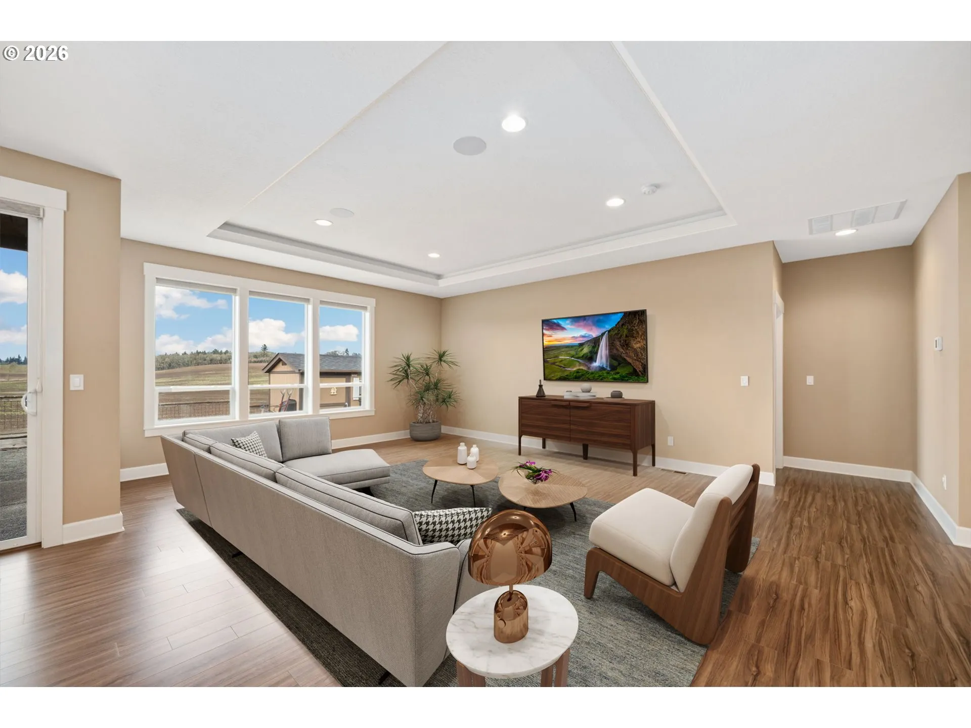 Step inside to a spacious, open floor plan defined by tall ceilings, abundant natural light, and oversized windows framing relaxing views of rolling pastures and distant hills. The functional, modern kitchen serves as the heart of the home, featuring durable granite countertops, an expansive island, and generous pantry storage. Adjacent, the light-filled dining area opens directly through sliding doors to the serene back patio and gardens. Three comfortable bedrooms on a single level, beautiful bathrooms, a private office and a workshop behind the garage complete the layout, offering both retreat and functionality.Outside, the excellent .19-acre lot balances relaxation and practicality. Enjoy the peaceful patio and gardens, front and back irrigation systems for simple maintenance and a spacious tool shed handles storage needs. Built for enduring quality, the home features concrete board siding, newer paint, an electric car hookup, an energy efficient whole house heat pump and a quality roof.Location is key. Situated in the sought-after Carlton Crest neighborhood, this home is just blocks from the vibrant heart of downtown Carlton. World-class wineries, restaurants, shops, and tasting rooms are easily accessible within minutes—by foot or short drive. Experience the tranquility and privacy of a quiet dead-end street setting, moments from Yamhill County’s finest offerings.