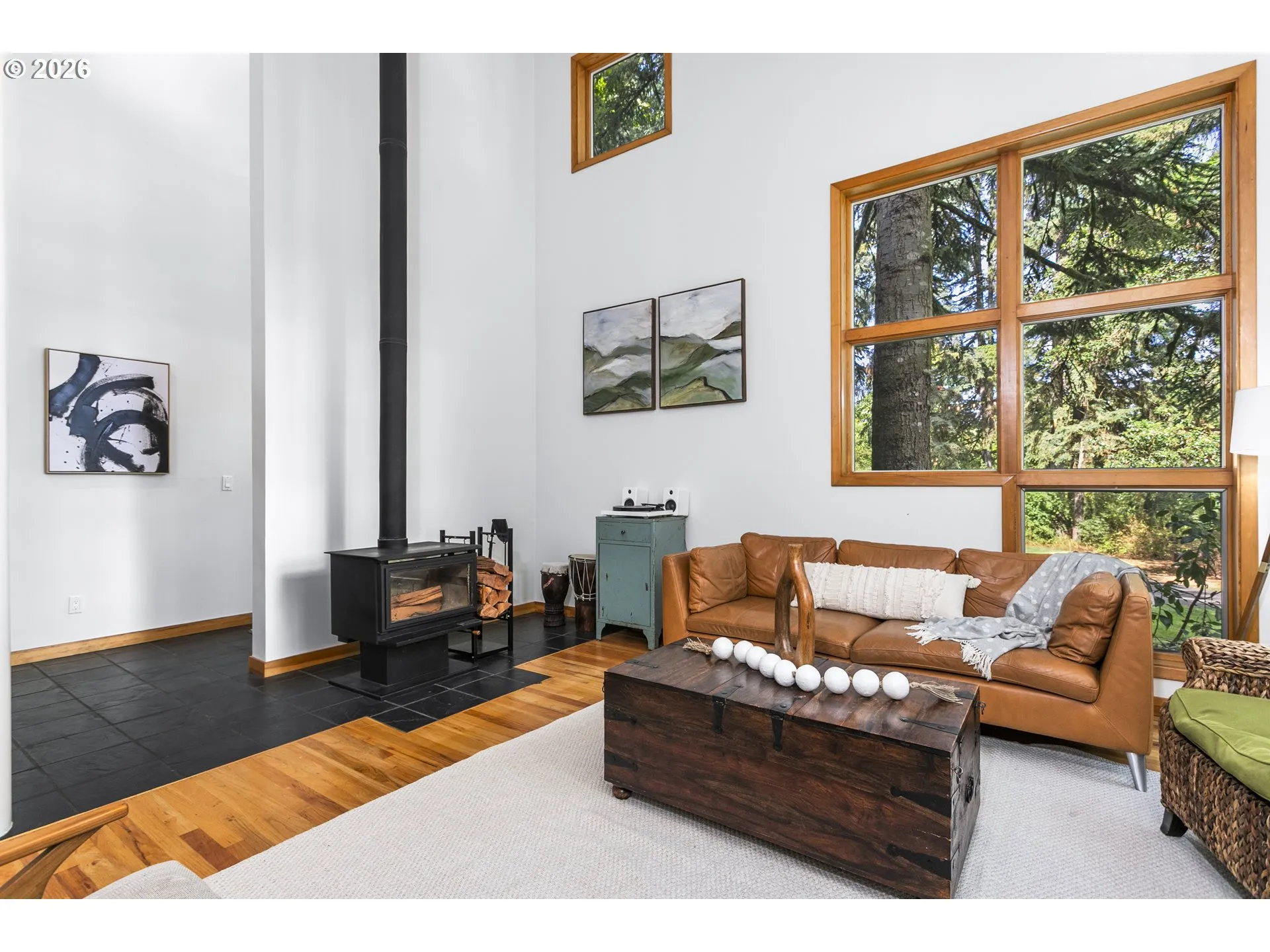 Discover a rare retreat in Sherwood, OR, where peace and privacy meet convenience. Tucked away on a private road just minutes from the freeway, this beautifully designed 4-bedroom home with ADU rests on 4.49 acres of wooded property, offering a sense of seclusion while keeping you close to everything.Custom-designed by the original architect-owner, the home is filled with natural light streaming through expansive windows—including interior windows in the primary suite—that connect the indoors to the surrounding forest. Recent updates include brand new carpet throughout, fresh interior paint, and a remodeled primary ensuite bathroom with heated slate floors. Hardwood floors adorn the main level, soaring vaulted ceilings, a central vacuum system, a sub panel and wired for a backup generator further enhance the home’s comfort and functionality.The open-concept layout creates an inviting atmosphere, while the property itself offers incredible versatility. A detached shop/barn includes a woodworking shop, private office, sewing room, workout space, equipment garage, loft with pool table, and a full ADU with a private entrance, kitchen, bathroom, and patio—perfect for multigenerational living or guest accommodations.RV enthusiasts will appreciate the dedicated parking with full hookups, including dedicated 50-amp power and cleanout. A peaceful walking trail encircles the property, making it easy to enjoy the beauty of the wooded setting.With its blend of thoughtful design, modern upgrades, and unmatched serenity, this Sherwood retreat is truly a one-of-a-kind opportunity – Welcome Home!