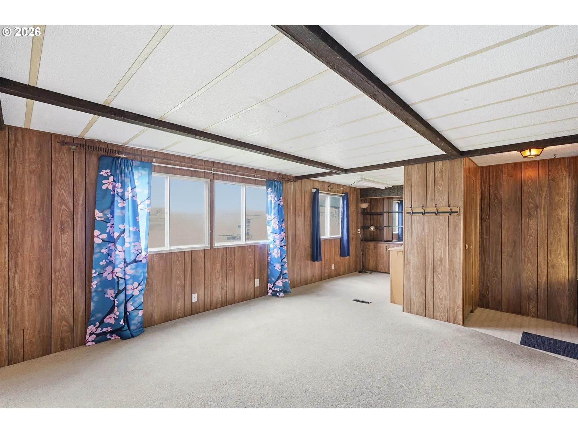 Space 24. Nice, clean and well cared for affordable home in Rio Linda Estates. This is a 1977 single wide home with 2 bedrooms and 2 bathrooms. RLID lists this home as 924 square feet. Spacious living room and kitchen. Sale includes refrigerator, washer and dryer. Nice size primary bedroom with attached bathroom with stand up shower and garden tub. Second bedroom has built in shelves and desk and connects to main bathroom. Indoor utility room, covered deck, and tool shed. Convenient location, just minutes to downtown Cottage Grove. Sale subject to park’s approval of buyer. The rules and regulations are attached to this listing. A list of things to know before you apply to the park is also attached.