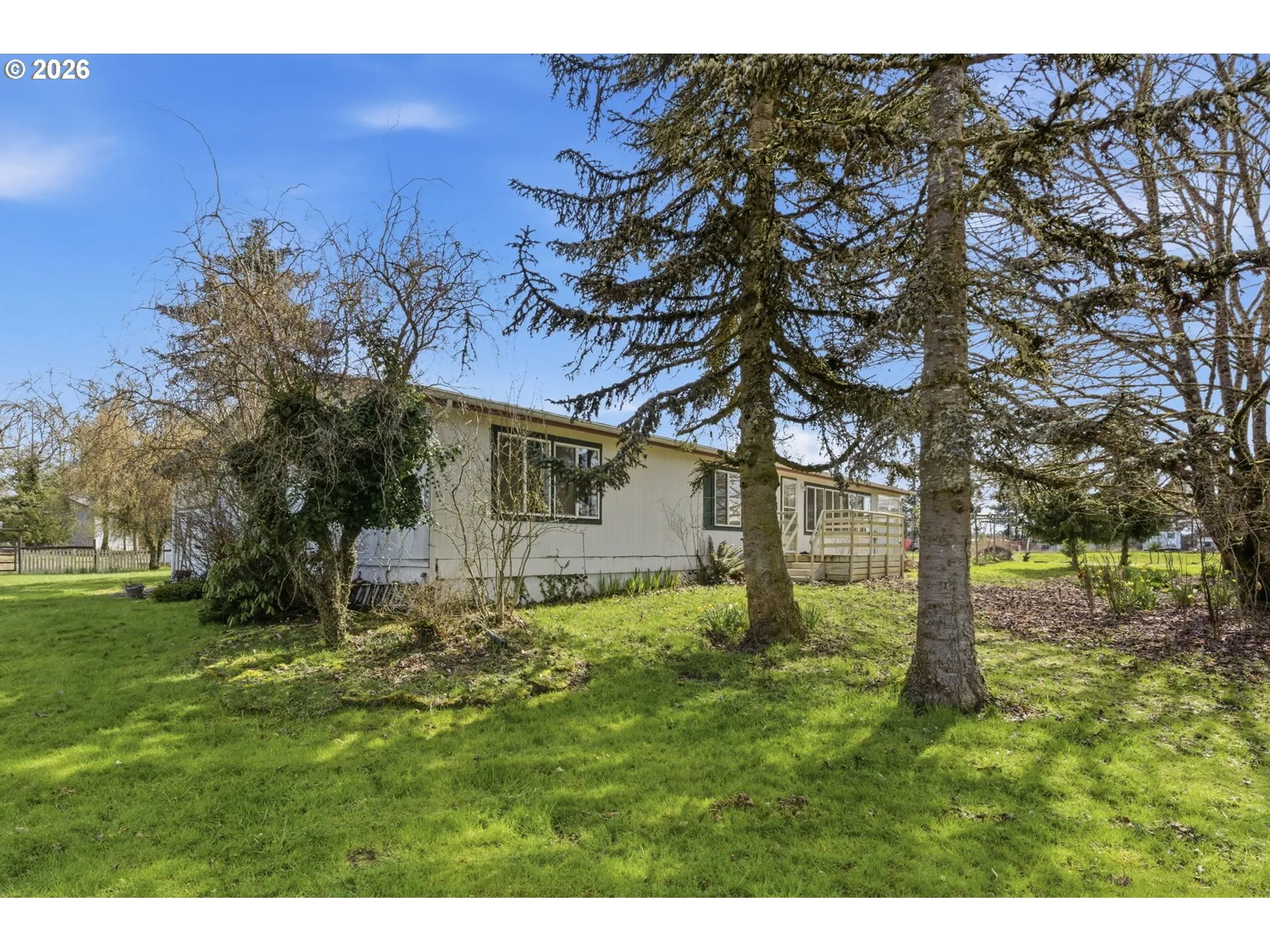 Experience the perfect blend of country living and convenience on this 4.8-acre property. This 1,568 sqft home features 2 bedrooms, 2 baths, a den/office, vaulted ceilings, and a classic wrap-around covered porch. Hobbyist and equestrian-ready, the grounds include a 2-bay shop and a 4-stall barn complete with mats, a tack room, and hay storage. This partially fenced acreage offers a rare balance of rural privacy and effortless I-5 access—schedule your private tour today before it’s gone!