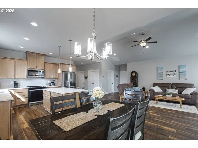 NEED STORAGE? Don’t miss this one while out of town on Spring Break! Check out this like new construction with a 4-car garage! This impeccably maintained Cedar Creek Benson model is move-in ready and loaded with “original owner” upgrades. The standout feature is the massive 4-car garage, including a 42ft RV bay with a 12ft door and a custom 143 sqft (13’x11’8) walk-up loft—perfect for a workshop or seasonal storage.Inside, enjoy an open-concept Great Room with vaulted ceilings, a cozy fireplace, and slab countertops throughout. The split-bedroom floor plan offers a private owner’s suite featuring a soaking tub, separate shower, and a massive walk-in closet.Sustainable & Smart Upgrades:Solar Power: 12 panels significantly offset electrical costs (currently covering ~7 months of usage).Custom Finishes: Hunter Douglas pleated blinds throughout.Outdoor Living: Fully fenced 7,519 sqft level lot with sod, sprinklers, a covered back deck, and a bonus 10×12 storage shed. If you need room for every toy and a space for a workshop, this is the one!