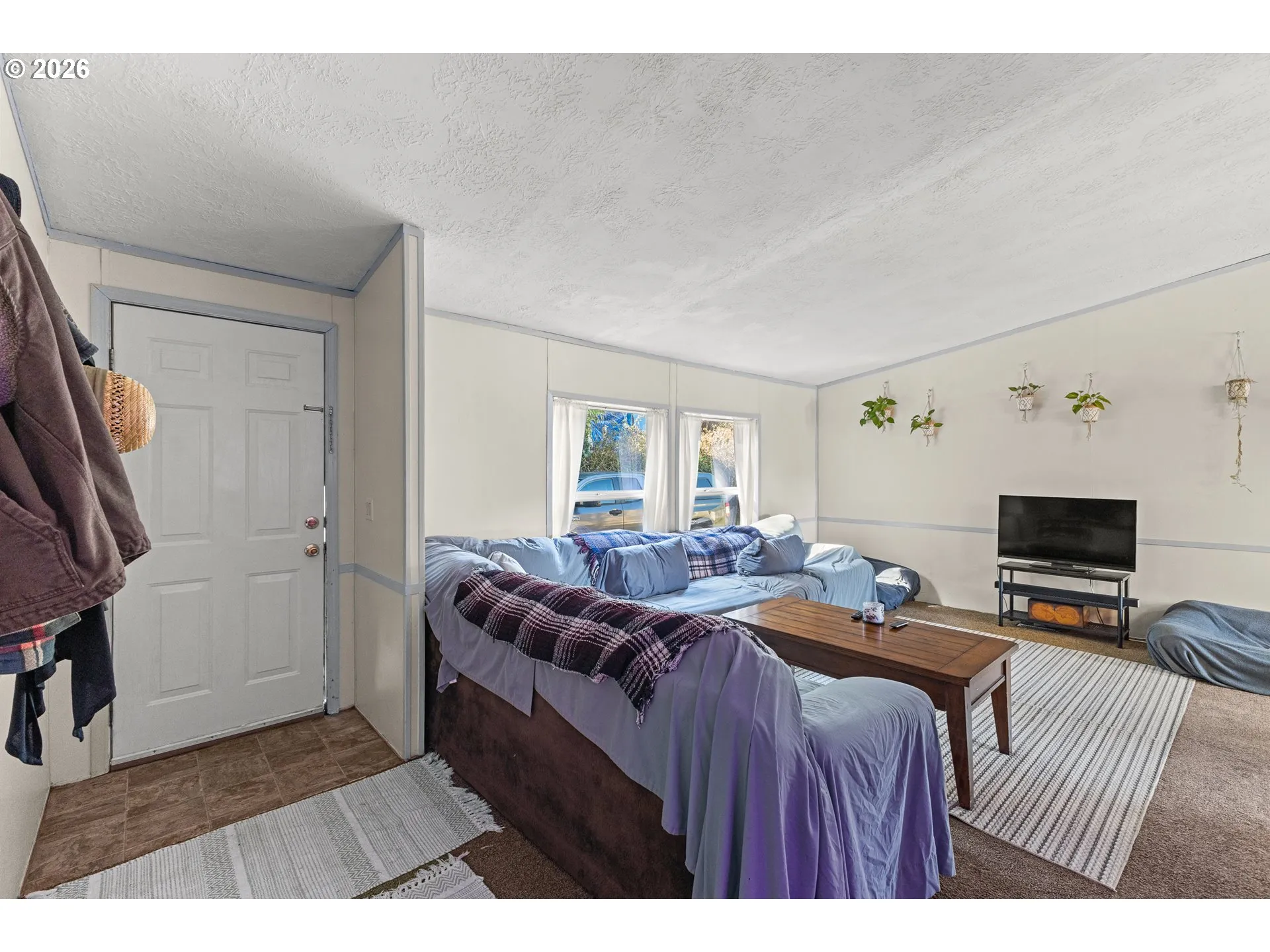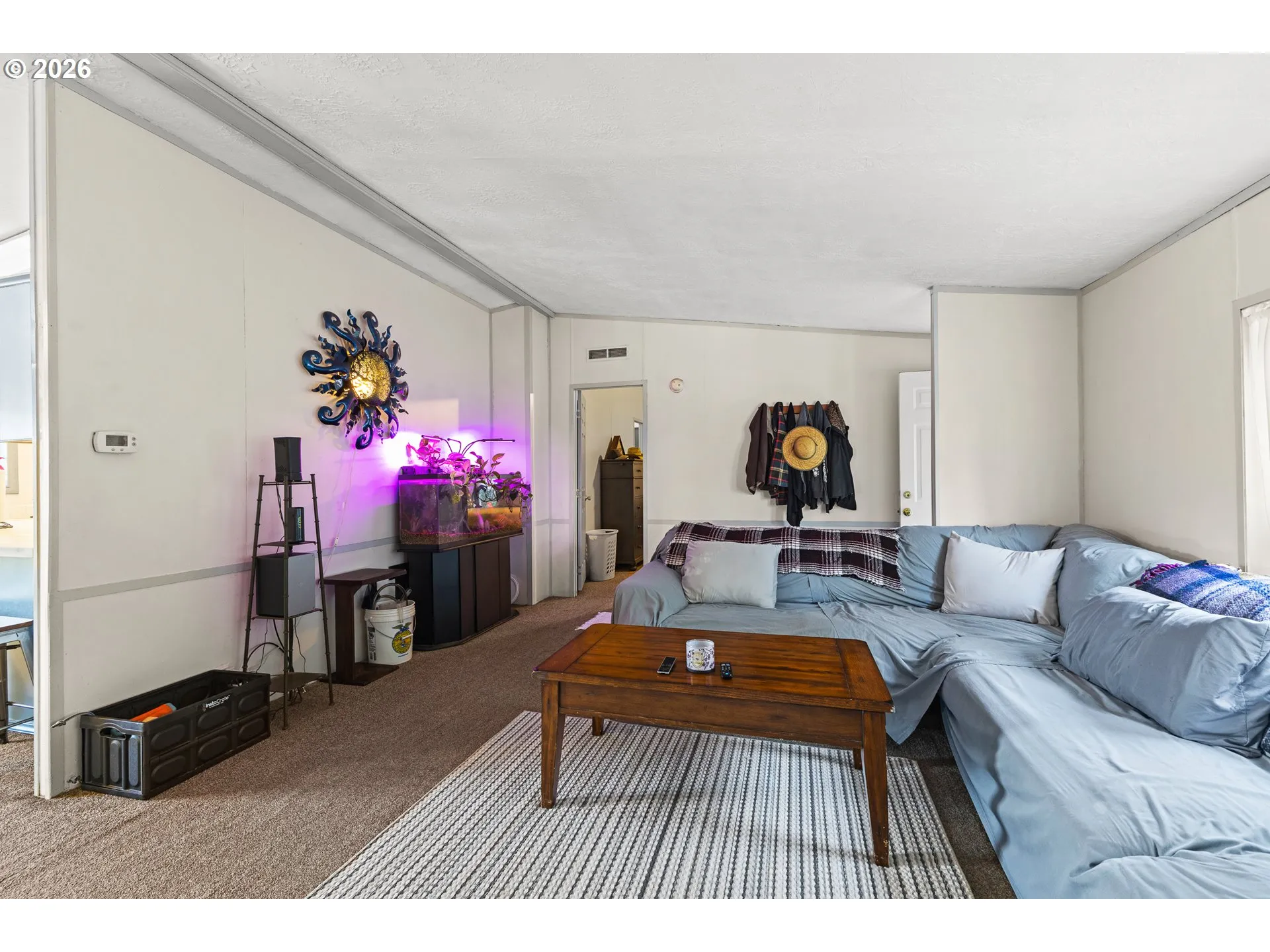 Welcome home to this spacious manufactured home perfectly situated on a corner lot in beautiful Coos Bay. Perched on a hill you get a water view of the Slough below. The interior boasts a large open floor plan featuring both a living room and a family room, anchored by a kitchen that feels “fresh and fun” with freshly painted cabinetry and a stylish butcher block countertop. The layout includes three bedrooms and two baths, highlighted by a big primary suite with a private bathroom and a relaxing jet tub.The outdoor amenities are just as impressive, offering a covered deck, a peaceful water feature, and a fully fenced yard ready for your pets or hobbies. This property is complete with a chicken coop and run, a dedicated tool shed, and lots of parking. A low maintenance yard make it a gardeners dream. Don’t miss out on this unique find—watch the video tour and call today to schedule your showing!
