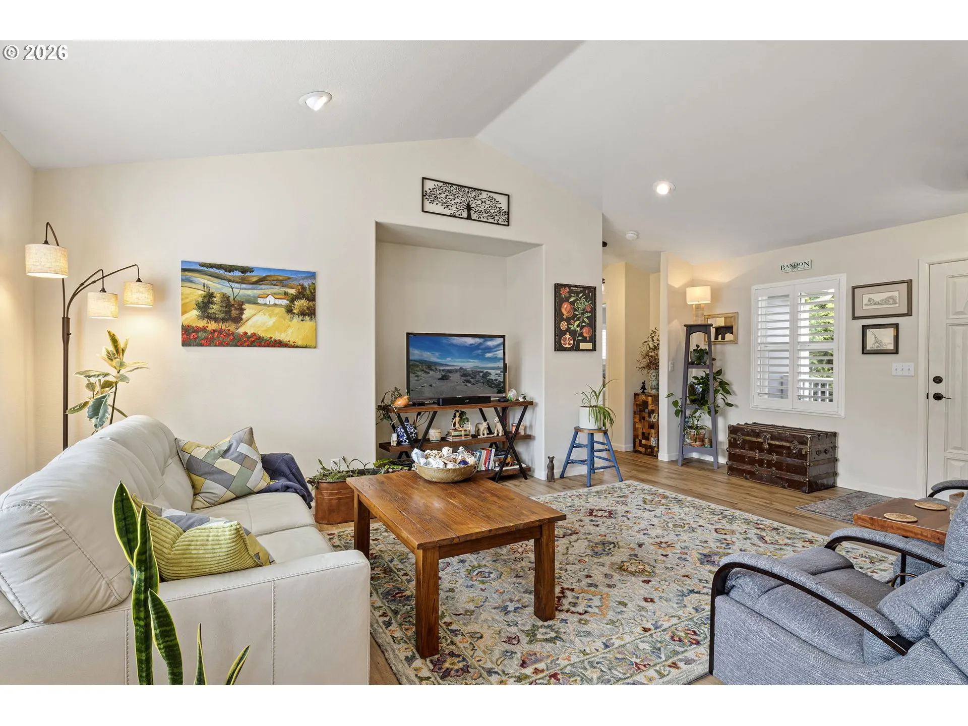 Well-maintained single-level 3BED/2BTH home in desirable East Bandon offering a private, wind-protected setting just minutes from Old Town and the beach. Vaulted ceilings and abundant natural light create an open, inviting layout with efficient ductless heating and cooling. Functional kitchen with pantry flows to the dining and living areas with deck access. Spacious primary suite with dual sinks and walk-in shower. Enjoy beautifully landscaped, low-maintenance grounds, a covered front porch, hardwood deck, fenced backyard, and RV/boat parking. Kitchen appliances plus washer and dryer included.