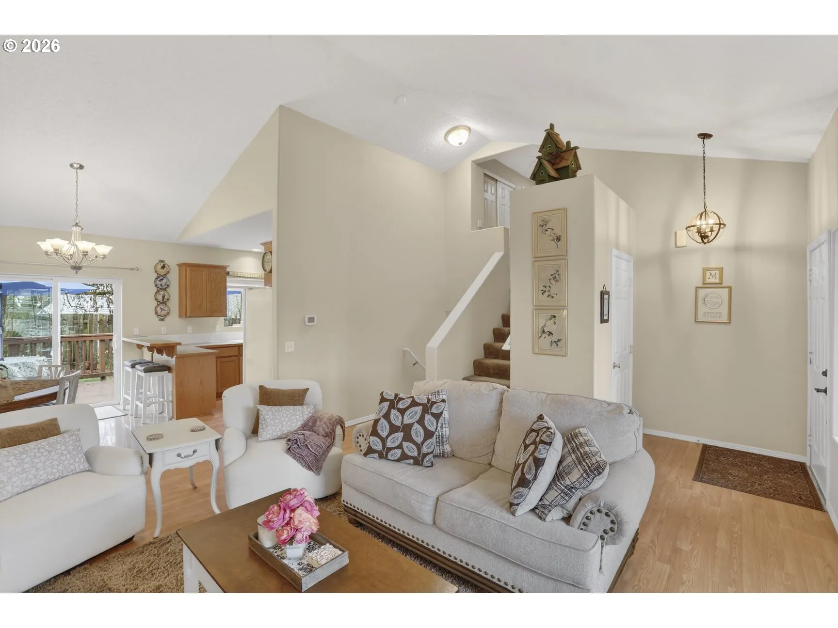 Tucked away in a desirable cul-de-sac with no HOA, this light and bright home offers space, flexibility, and room to grow. Situated on a large and spacious lot, the property also features two storage sheds and a spacious deck—perfect for entertaining or relaxing outdoors. Inside, vaulted ceilings in the living and dining rooms create an open, airy feel, complemented by laminate flooring throughout. The living room features a gas fireplace. The versatile lower-level fourth bedroom offers flexibility and could easily function as a bonus room, home office, or guest space to suit your needs. Brand new roof just installed and comes with a transferable warranty.