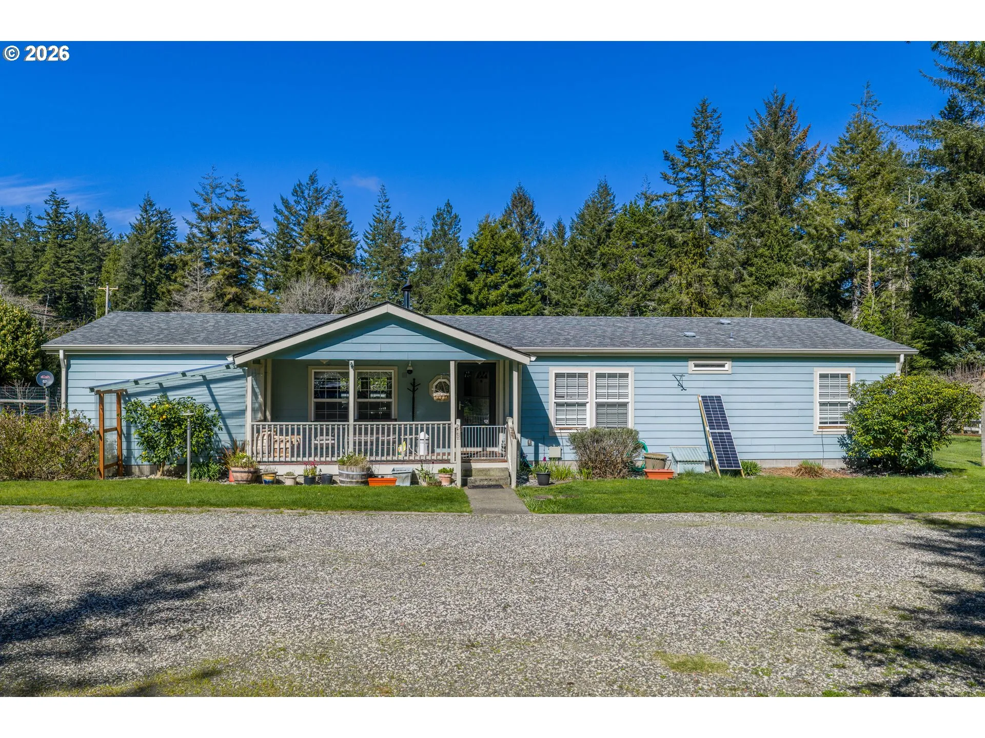 Rare opportunity to own a private, fully fenced .83-acre retreat just minutes from the Oregon Dunes! This spacious 4-bedroom, 2-bath home offers 1,782 square feet of comfortable living, perfectly blending rural tranquility with convenience. Tucked away for privacy, the property delivers the space, flexibility, and lifestyle buyers are searching for. Inside, you’ll find a functional layout with generous living areas and room for everyone. Step outside and experience the true highlight—your own personal oasis. The expansive, fenced acreage features multiple fruit trees, including apple, cherry, lemon, peach, and, in the garden, artichokes, rhubarb, asparagus, huckleberries, blueberries, and grapes, creating a beautiful and productive landscape year-round. This property is fully equipped for both work and play, featuring a large detached 2-bay garage, ample RV parking with hookups, and plenty of space for all your vehicles and recreational toys. A greenhouse, chicken coop, and charming she shed add versatility and appeal for hobbyists, homesteaders, or anyone looking to embrace a self-sufficient lifestyle.Relax or entertain on the covered back deck complete with a BBQ area, perfect for enjoying peaceful evenings or hosting gatherings. With city water plus a well dedicated for irrigation, maintaining the grounds is both efficient and cost-effective. Located just minutes from the dunes, this property is ideal for outdoor enthusiasts while still offering quick access to town amenities. Properties like this—with acreage, privacy, and extensive features—are hard to find. Don’t miss your chance to own a slice of coastal Oregon paradise—schedule your showing today!