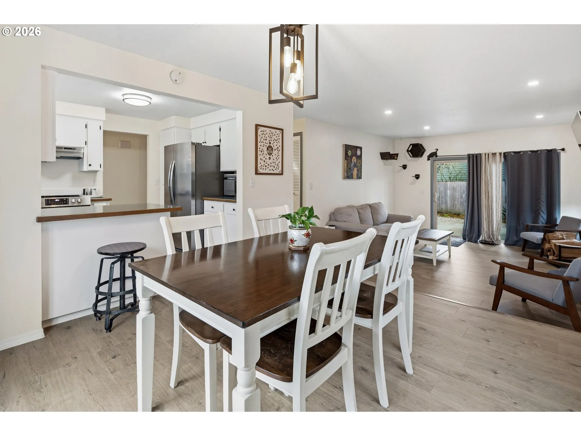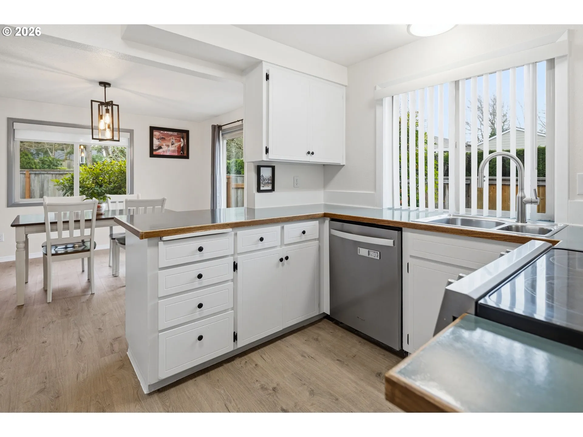 Welcome to this beautifully updated rare 1 level end-unit Townhome home centrally located to Hwy 217, Washington Square, Whole Foods and nearby restaurants. Step inside to discover a bright, open layout with updated LVP flooring and newer interior paint throughout and a seamless flow between the living, dining, and kitchen spaces. The inviting living room features a recently painted brick wood burning fireplace perfect for cozy evenings.The kitchen has ample cabinetry, and a convenient breakfast bar that opens to the dining area, ideal for both everyday living and entertaining. Both full bathrooms have been tastefully refreshed with contemporary touches. Outside, enjoy a private backyard with room to relax, garden, or entertain. Whether you’re hosting friends or enjoying a quiet morning coffee, this outdoor space is ready to fit your lifestyle.Updates include: New Siding (2024) / New Roof and Gutters (2023) / New Water Heater (2023) / New Electrical Panel and wiring throughout (2023) / New Furnace (2024) /New Windows and Sliding Doors (2020) / New Fencing around the property (2022) / New Garage Door (2024) / New Refrigerator (2025) / New Dishwasher (2023) / New Stove-Top/Range Hood (2023) / New Flattop Stove (2026)
