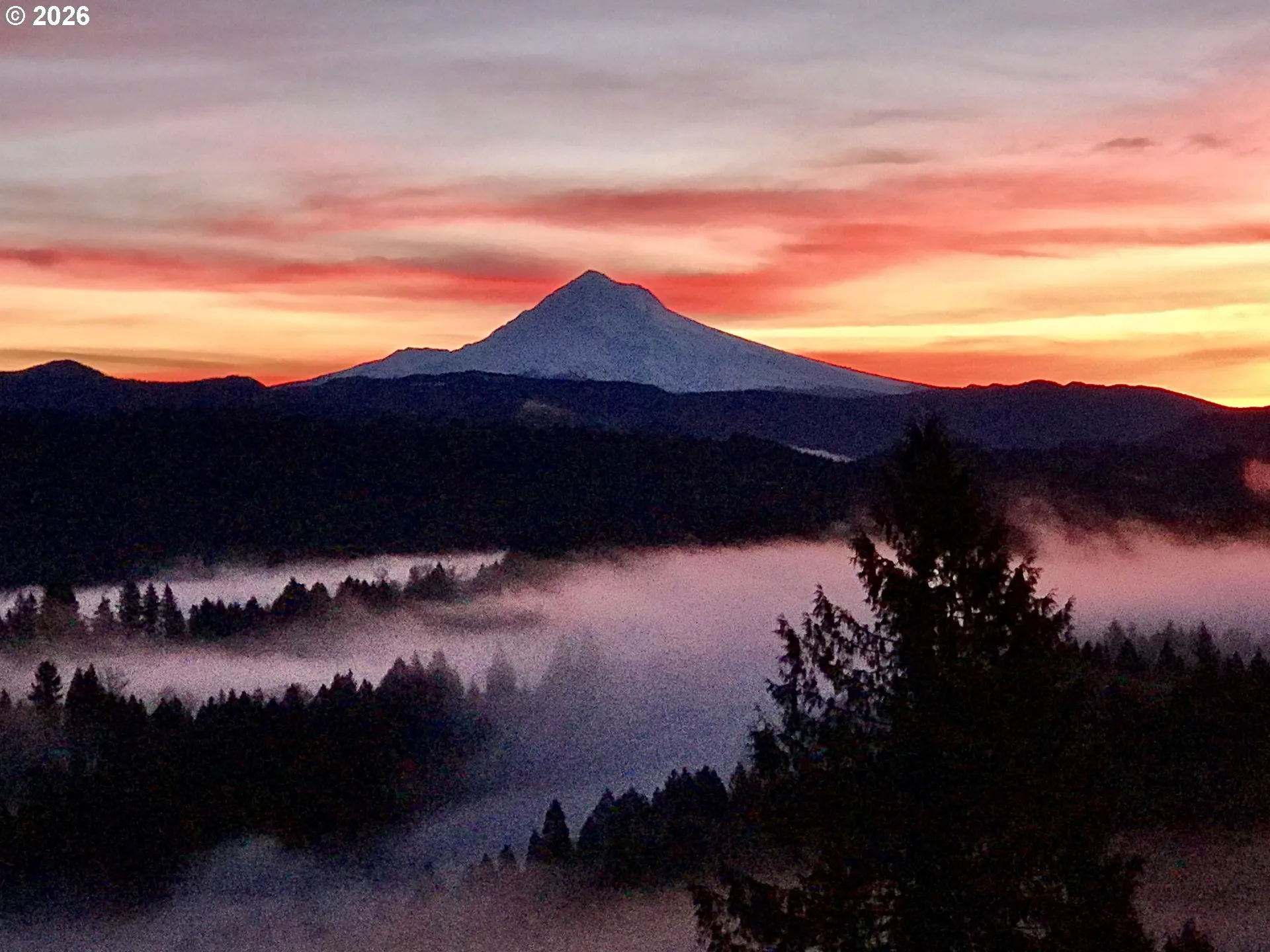 Almost Heaven! Bucolic, one-level living with a breathtaking backyard. Sunrise kaleidoscopic alpenglow is phenomenal! Serene panorama identical to Jonsrud Viewpoint a few steps north. City of Sandy website brands it ‘one of the best views of Mt. Hood in Oregon.’ Brief walk to nearby retail and restaurants. Green thumbs and outdoor enthusiasts’ delight! Meticulously maintained, move in ready & storage abundant. New heat pump and air handler 2025. Decks just prepped and stained. Siding recently treated or painted. Oak hardwood floors refinished and new thermostatic pellet stove last 2 years. Brand new refrigerator, all appliances included! OPEN HOUSE 12-2pm SAT. 4/4.