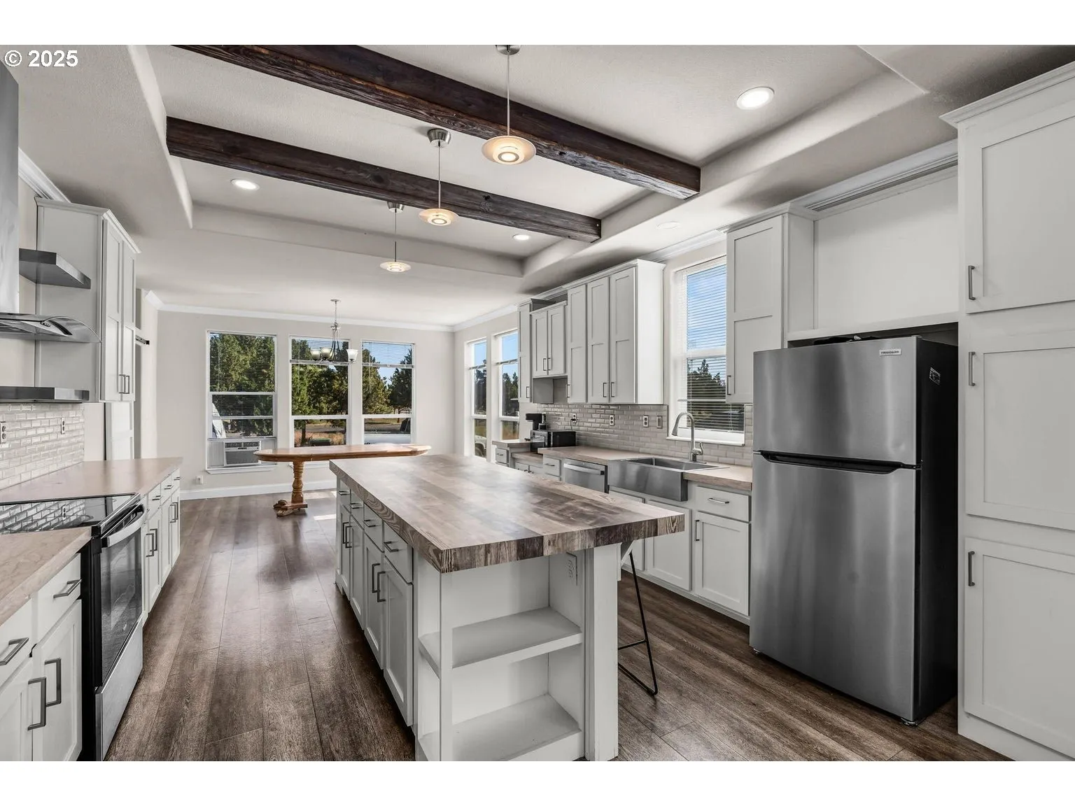 Discover this beautifully appointed 1,882 sq. ft. Prefab home w/3 spacious bedrooms & 2 full baths nestled on 1.9 acres of serene high desert w/Mountain views. Enjoy endless opportunities for spacious indoor/outdoor living. Lg great room w/open floorplan. Gorgeous Chef’s Kitchen boasts wood beam accents, massive central island w/breakfast bar seating, an abundance of cabinetry & counter prep space, all appliances, adjacent to a well sized dining area w/floor to ceiling windows for plenty of natural light & views. Primary suite is a true oasis w/sliding doors that lead outside, bath featuring garden tub, walk-in tiled shower, dual vanities & massive walk-in closet. Two additional guest rooms share a full bath. Laundry room w/washer & dryer. New exterior gravel patios for year round entertaining w/raised bed surrounds. Plenty of space for hobbies, toys, critters & RV parking w/30 amp hookup. Embrace the possibilities of this incredible property!