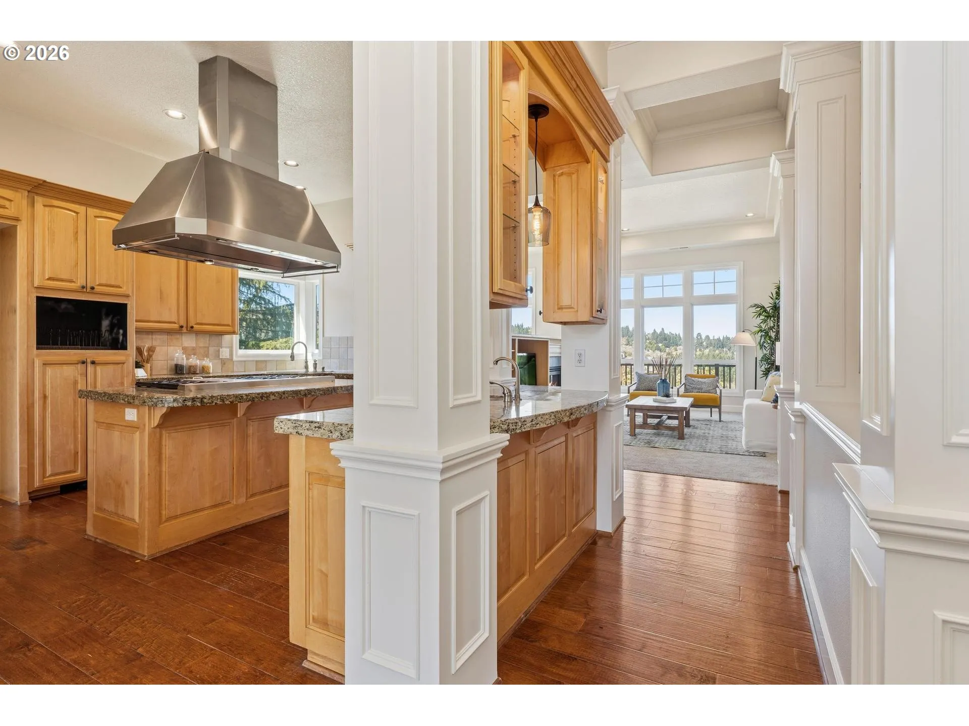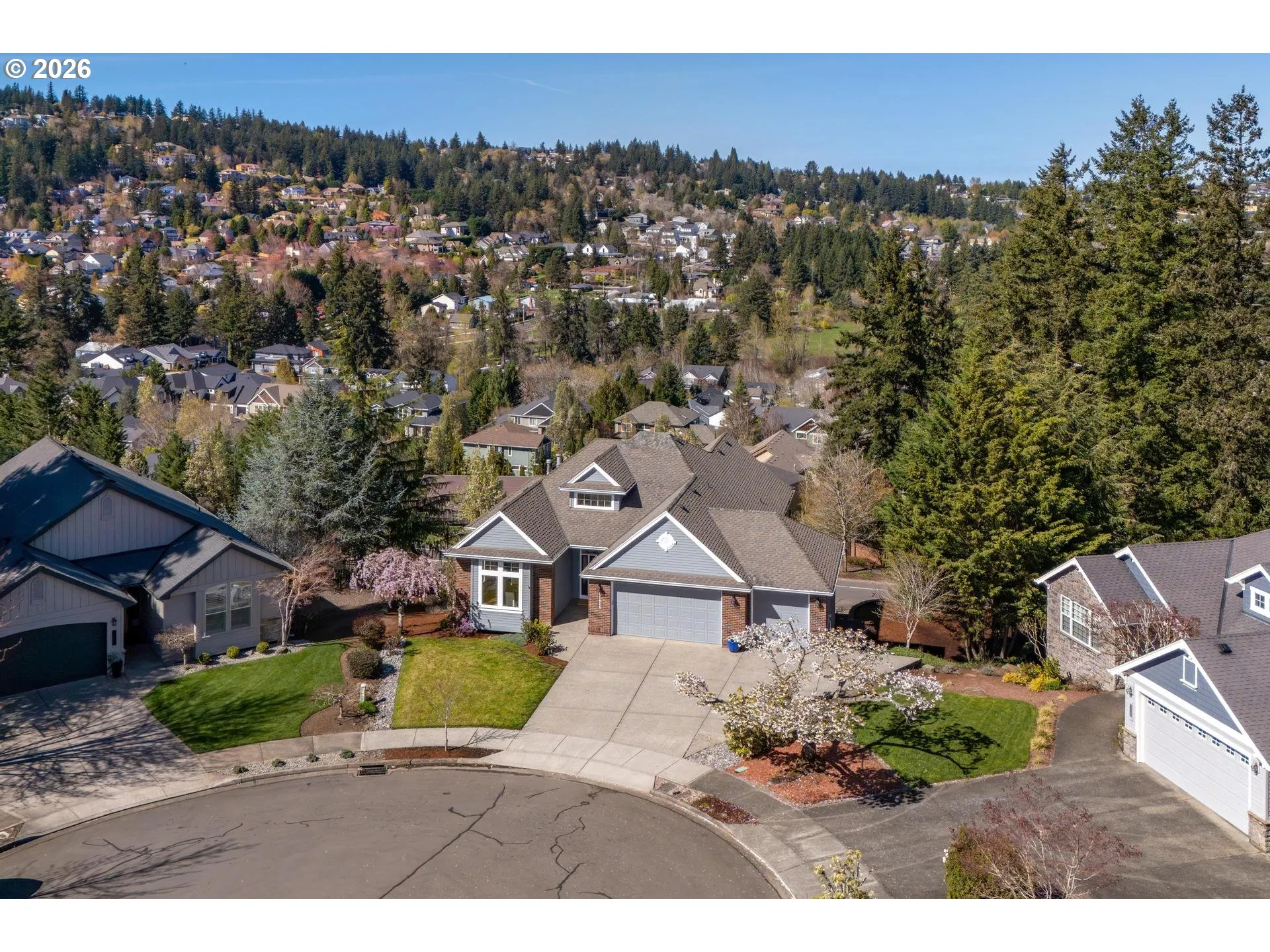 Custom built by RJ Menashe and ideally located on a quiet cul-de-sac in the Deerfield Park neighborhood, this 5 bedroom, 3.5 bath home offers 3,079 SF of well-designed living with sweeping territorial views and multiple outdoor spaces. Featuring a highly desirable primary bedroom on the main level, the main floor also includes formal dining and a spacious kitchen with island, pantry, wet bar, and double ovens, all positioned to take advantage of the home’s natural light and views. The lower level provides exceptional flexibility with a large family room, three additional bedrooms, and two full bathrooms including a Jack and Jill layout, making it ideal for multigenerational living, guests, or work-from-home needs. Situated on a .26 acre lot, the terraced backyard includes garden beds, mature landscaping, and three separate decks for true indoor-outdoor living. Major system updates include whole house PEX plumbing (2026), new furnace and AC to be installed prior to closing, water heater (2025), dishwasher (2023), sump pump (2026), and a composition roof certified for 5 years, offering peace of mind for the next owner. Additional features include a gas fireplace, oversized 3 car garage, main level laundry with sink, and over 900 SF of unfinished storage. Conveniently located near Happy Valley amenities, parks, and Sunnyside Rd shopping, this home offers the ideal combination of space, updates, and everyday livability in an established neighborhood setting. Located within the North Clackamas School District, including Clackamas High School, Rock Creek Middle School, and Spring Mountain Elementary.