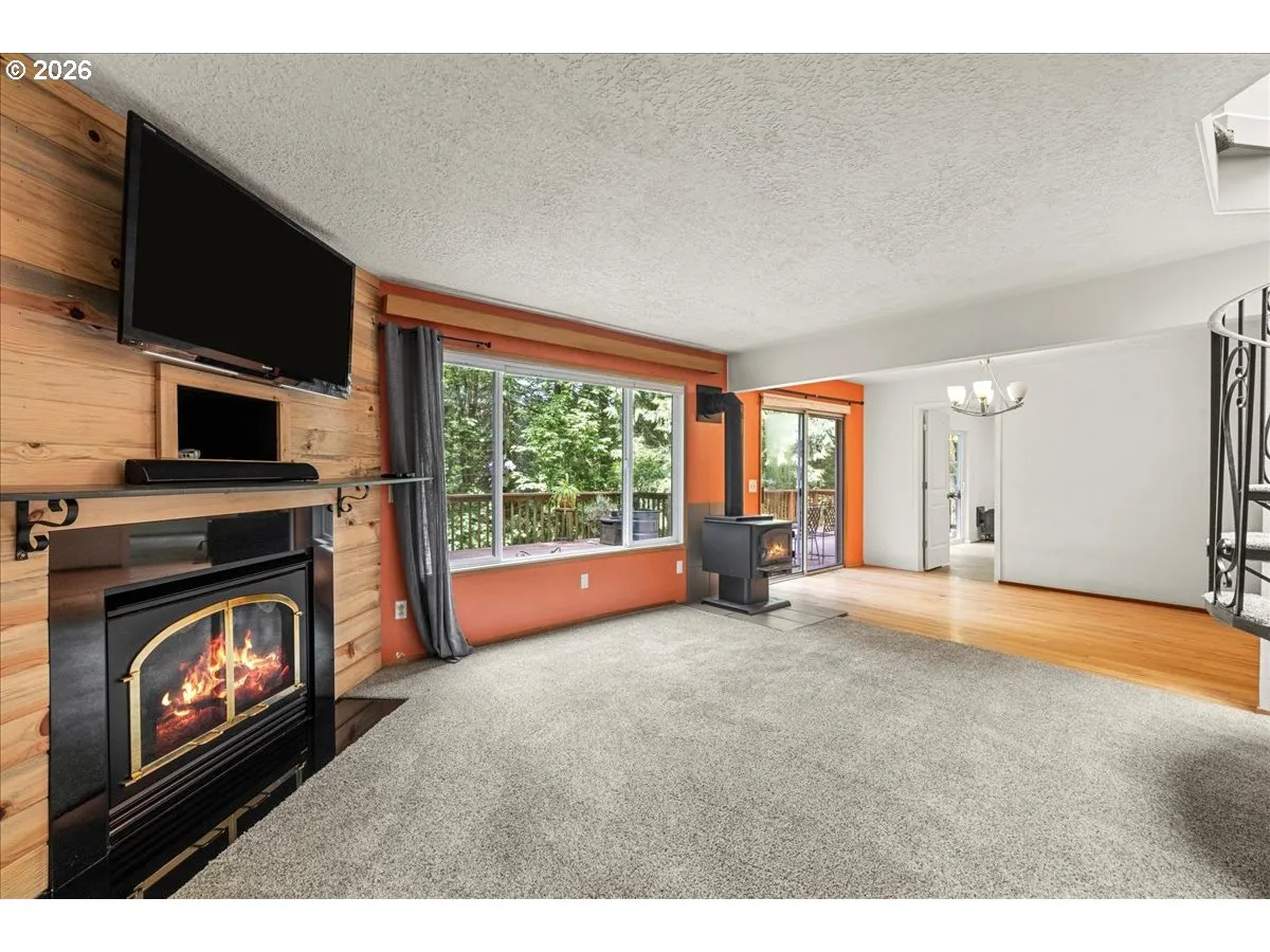 Nestled beneath a canopy of mature trees on 4.33 serene acres in Sherwood, Oregon. This ideal tri-level home built in 1972 offers the perfect setting for multi-family living. New roof, septic tank, skylights, and interior paint. The spacious layout includes four bedrooms and four full bathrooms. The main floor features a warm and inviting living room, a centrally located kitchen with hardwood floors and stainless steel appliances, a dedicated dining area, and a versatile multi-use room that can easily serve as a fifth bedroom. A full bathroom and convenient utility room are located on the main level. Upstairs, you’ll find two primary suites each with their own bathroom, and an additional generously sized bedroom. The lower level is perfectly suited for extended living or guest quarters, offering a second full kitchen, a bedroom, and a bathroom with both interior and private exterior access. Thoughtfully designed home with an additional 512 sqft storage room that could be used in various ways. Step outside to enjoy peaceful, private views from the expansive wraparound deck, with the year round Chicken Creek flowing through the rear of the property. Fresh interior paint. Only 1.5 miles from the high school and a little over 2 miles from Ridges Elementary. Embrace country living with all the conveniences of nearby shopping, dining, and entertainment. Schedule your private showing today and experience the unique charm and versatility of this exceptional home.