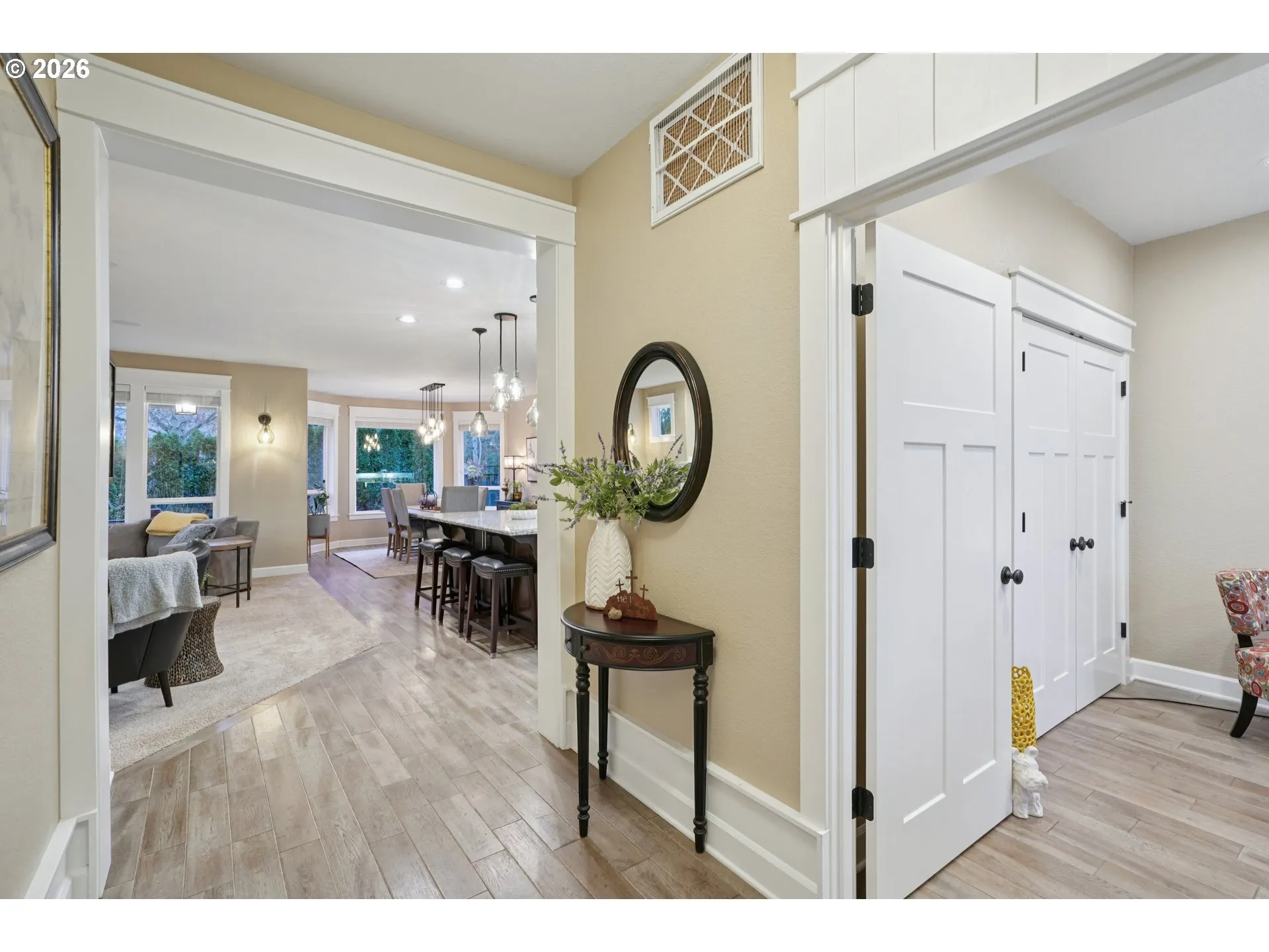 Fantastic custom Happy Valley home with amazing layout on quiet street! This home is the only home on the loop without a home built in front of it and is within minutes to all the parks, schools, shopping, and other amenities of the desirable Happy Valley area. Main level primary suite with walk-in closet, walk-in shower, soaking tub, bay window, and access to back patio. Two additional bedrooms on the main level adjacent to full bath, the 5th bedroom is currently used as office. Excellent open kitchen overlooks living and dining rooms with granite counters, stainless steel appliances, gas range, large pantry and big island with breakfast bar. Upper level features spacious family room perfect as a media room. Two additional bedrooms upstairs, one with en suite bathroom. A total of two full baths on the upper level for a total of 4 full bathrooms in the home. Storage room off the upper level bathroom provides plenty of space in addition to more storage in the huge 3-car garage. Head outside to enjoy the covered patio which extends out into the backyard, fantastic low maintenance landscaping in both the front and backyards. This well thought out home is absolutely a must see!