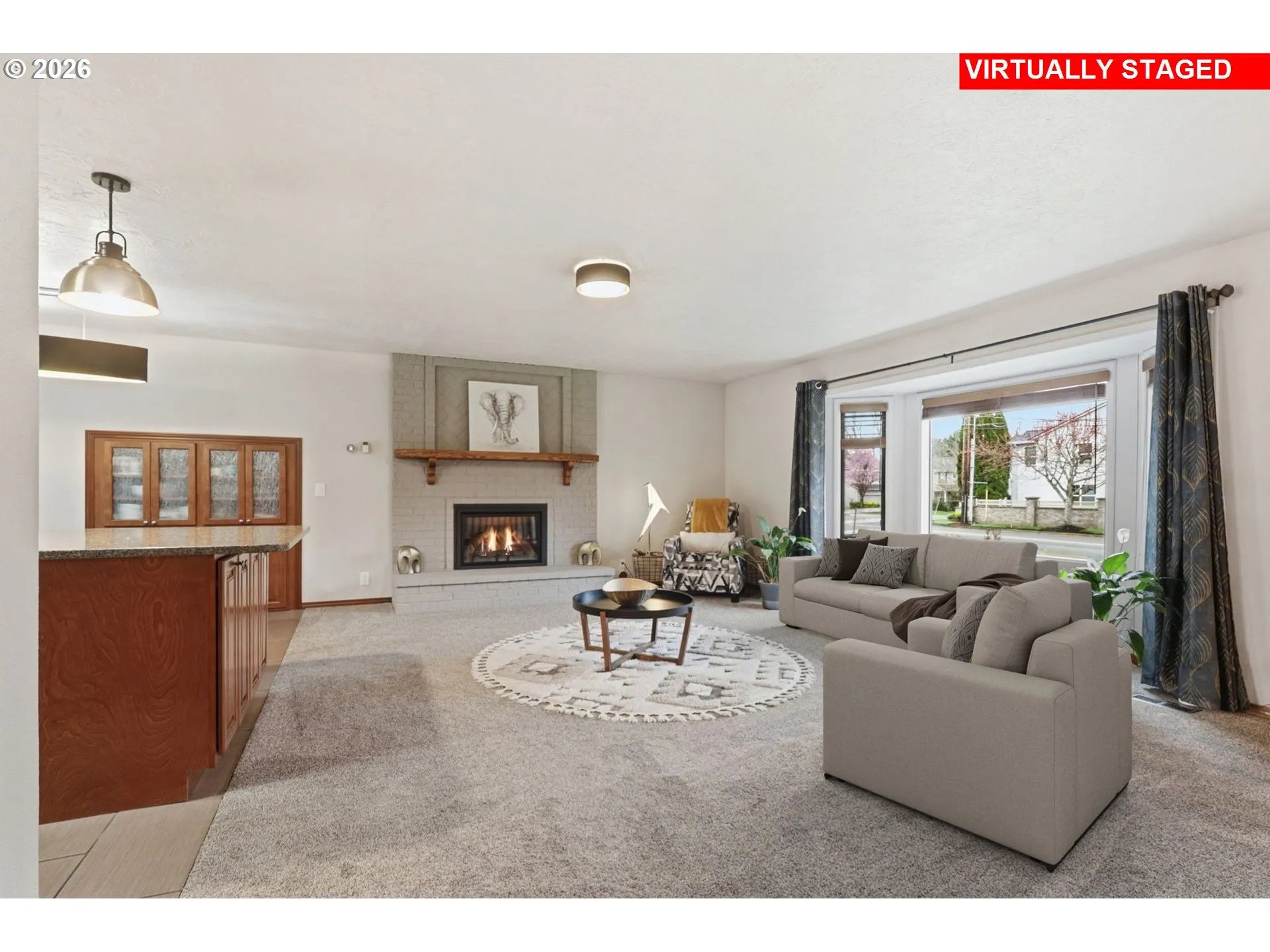 This beautifully updated split-level residence is a true Mid-Century Modern home nestled on a sprawling lot of just under an acre, offering a perfect balance of modern comfort and exceptional utility. The heart of the home is the stunning kitchen, which features a large island, sleek quartz countertops, and abundant storage with built-in cabinetry that flows into a dining area with a slider to the back deck. Notably, the kitchen is equipped for either a gas or electric stove, providing versatile options for any chef. In the main living room, a large bay window fills the space with natural light, highlighting the impressive floor-to-ceiling brick fireplace with a gas insert. The primary suite serves as a true retreat, boasting its own private slider to the deck and a walk-in closet, while the updated main bathroom provides a spa-like experience with dual sinks and a beautiful new walk-in tiled shower. The lower level expands your living options with a spacious family room anchored by a second floor-to-ceiling rock fireplace with a gas insert and an adjoining flex space with a tile floor. Practicality is a priority here, evidenced by the large utility room equipped with a sink and laundry, as well as the attached garage. For the hobbyist or professional, the property features a massive 1,200 sq. ft. shop complete with a cement floor, 220V power, and a gas furnace for year-round comfort. Outdoors, the huge backyard is a gardener’s paradise featuring 20 blueberry bushes, 80′ of mature grape vines, 60′ of mature raspberries, a huge fig tree, and multiple fruit trees. With these established plantings and additional dedicated garden space, this property is a rare find for those seeking both room to breathe and a place to create. [Home Energy Score = 5. HES Report at https://rpt.greenbuildingregistry.com/hes/OR10245438]
