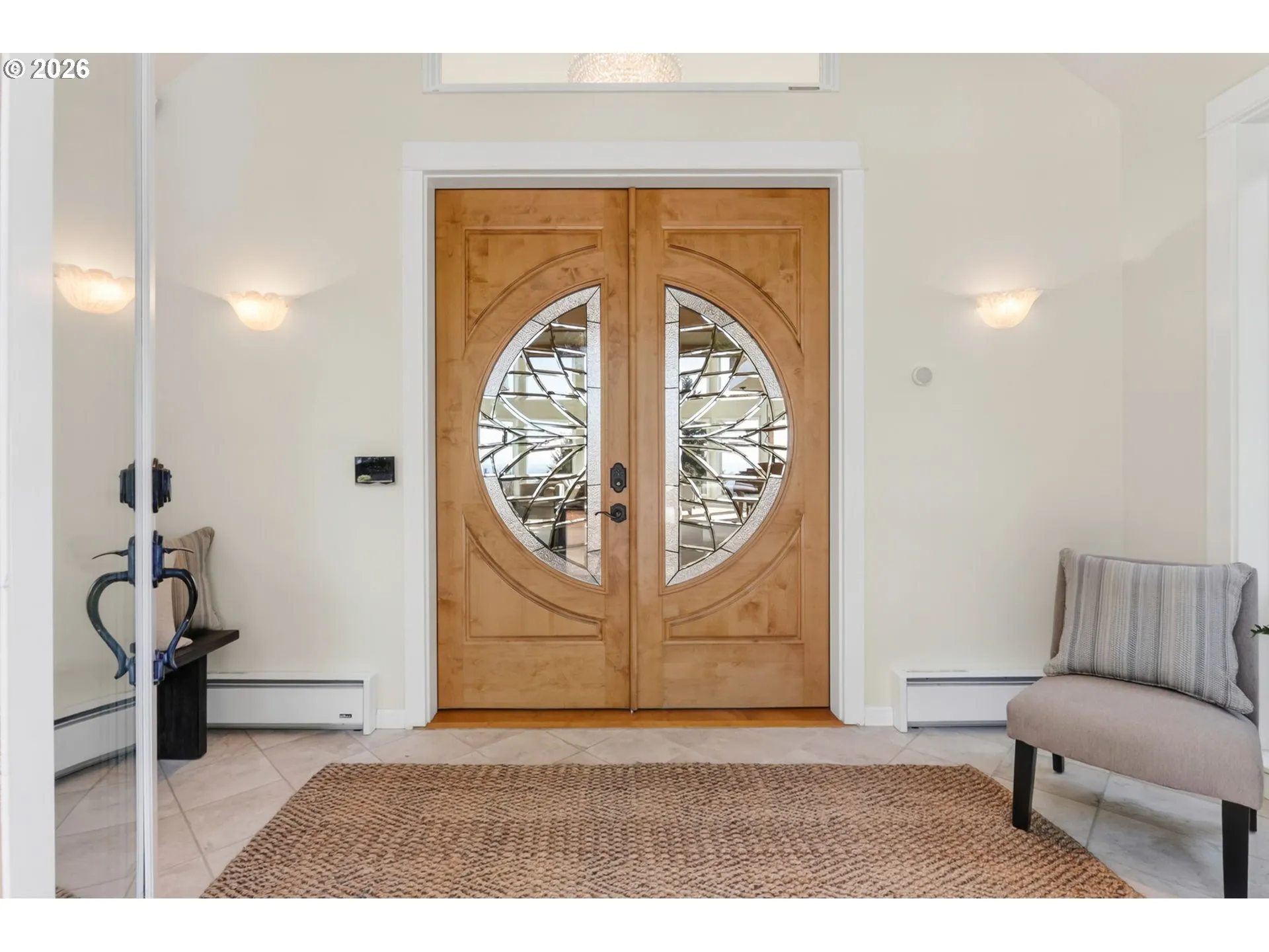 This Parrett Mountain custom home is a masterclass in design and craftsmanship. The home commands attention not only for its scale, but for the intentionality and artistry woven throughout. When you enter the home, a dramatic wall of glass frames a sweeping five-mountain view, flooding the interiors with natural light and creating a seamless connection to the surrounding landscape. Crowning the home, a glass turret observatory offers a breathtaking vantage point for stargazing. The main level is anchored by a stunning great room with soaring ceilings, spacious gourmet kitchen and a serene, primary suite all designed for an elevated daily experience. From the main level, a sculptural handcrafted staircase leads to a skybridge, connecting two private rooms hidden behind custom bookcases. The lower level of the home provides exceptional versatility, featuring a second full kitchen, 2 additional bedrooms, bonus laundry room, a theater room and outdoor access. This is an ideal layout for multigenerational living or private guest quarters. Set up for entertainment, the home includes a private theater, expansive arcade, dance hall, sunroom and greenhouse. Outdoors, the grounds are meticulously maintained with beautiful hardscaping, a fully equipped outdoor kitchen, a custom waterfall hot tub and mature landscaping. In addition to an oversized three-car attached garage, there is a 30′ x 74′ shop with a full-size RV bay and a 580 sq ft, heated shop with ½ bath. Electric – 400 amp service to home; separate 200 amp meter/service to shop. Home is also equipped with a 15kw Generator. The main home has comfortable heated flooring throughout, a whole house sounds system, a smart system and is pre-wired for an automatic entry gate. This is a true luxury estate in one of the region’s most coveted neighborhoods with convenient access to Sherwood, Wilsonville, Newberg and Portland.