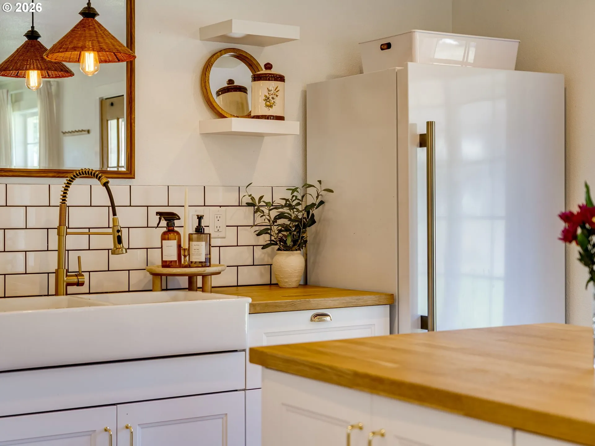 WOW! Just WOW! Fall in love the moment you step inside this beautifully updated ranch-style home, where comfort, charm, and easy one-level living come together in all the right ways.With 3 bedrooms, 2 bathrooms, and an easy-to-maintain layout, this home invites you to slow down, settle in, and imagine the life you’ve been craving. The welcoming entry flows naturally into a quaint dining area, cozy living room, and stunning kitchen designed to be the heart of the home. The kitchen is full of style and personality, featuring wood block countertops, a perfectly placed island, clean modern lines, an apron-front sink, and gorgeous gold finishes that bring a fresh, elevated feel. And just so we’re clear… no, the décor does not stay. Throughout the home, you’ll find light, airy flooring, warm paint tones, and thoughtful touches that make the space feel polished and personal. The guest bath is charming and conveniently located near the guest bedroom. The primary suite truly steals the show. Filled with natural light, it offers an oversized closet connected to the private bath, where you’ll find a large tiled shower with two shower heads. Yes, really. Two. Step outside to the covered back patio, sip your morning coffee, and take in the possibilities of the fully fenced backyard—ready for garden beds, play space, gatherings, or a peaceful place to unwind. The third bedroom adds flexibility for real life, perfect as a bedroom, office, playroom, or creative space, with convenient access from both the house and garage. All of this is tucked into the charming Yacolt community, close to the dog park, skate park, city park, pizza, and coffee—small-town touches that make this house feel like home.
