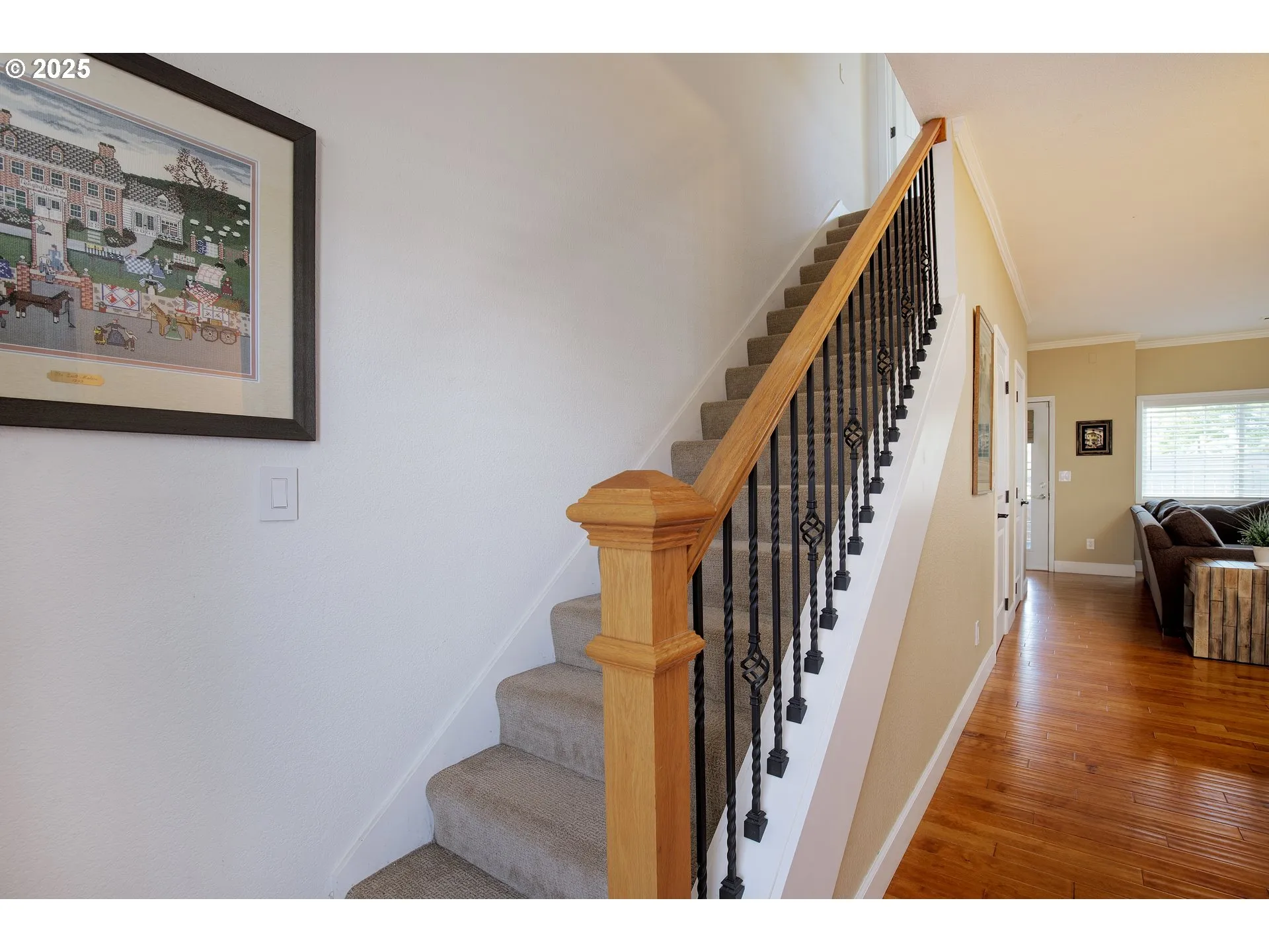 Classy townhome living in a peaceful, quiet community. This home features two spacious primary suites and 2.5 bathrooms, a floor plan that is perfect for comfortable living or shared spaces. Enjoy your own private, fenced courtyards with gates in both the front and backyard, ideal for gardening, entertaining, or relaxing with pets. Surrounded by serene trails, mature trees, and greenspace, the setting offers a peaceful retreat just outside your door. Both bedrooms have private bathrooms, vaulted ceilings and stunning windows that flood the rooms with natural light. One suite includes two walk-in closets for ample storage. The main level showcases engineered hardwood floors, a wood-burning fireplace, and a kitchen with granite counters, white cabinetry, a pantry, and views of the courtyard. Additional highlights include an oversized 1 car garage with built-in storage, plus guest parking and curbside parking options. Community amenities include a pool and multiple trails. Centrally located in Wilsonville with easy access to schools, shopping, dining, and parks, plus just minutes from I-5 for quick trips to Portland or Salem.