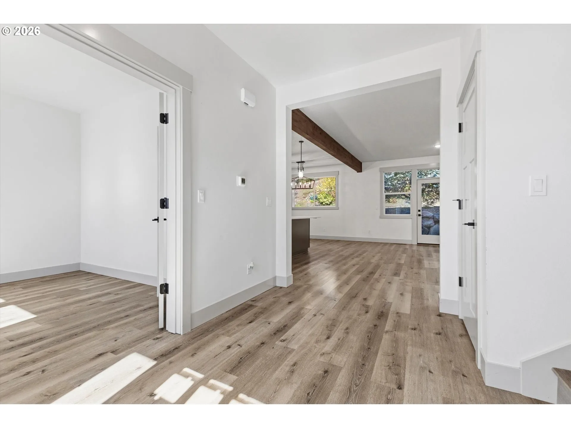 Perched in the coveted Elk Ridge Estates, this like-new 2021 home by Red Tail Development offers the perfect blend of modern design, comfort, and luxury. From the moment you arrive, the extended driveway and striking curb appeal set the tone for what awaits inside. Meticulously maintained landscaping leads to a welcoming foyer, opening into a light-filled interior enhanced by tinted window coverings that provide both privacy and warmth. The spacious great room features a gas fireplace and an classy exposed wood beam, seamlessly connecting the living and dining areas beneath tall ceilings and expansive windows. Luxury vinyl plank flooring flows throughout the home, creating a cohesive and airy feel. The heart of the home is the well appointed kitchen, complete with quartz countertops, tile backsplash, Silgranit sink, eat-up island, and abundant cabinetry. Energy Star stainless steel appliances and a generous pantry with a built-in nook add both efficiency and convenience. Sliding glass doors open to a thoughtfully designed backyard featuring a natural rock retaining wall and concrete patio, ideal for outdoor entertaining or relaxing evenings. The oversized garage includes epoxy flooring, extra-tall ceilings, and a utility sink. A main-level office with French doors and a full bathroom with a walk-in shower provide flexibility for guests or remote work. Upstairs, you’ll find four spacious bedrooms and a dedicated laundry room. French doors lead into the primary suite, offering a luxurious space with tile flooring, walk-in tile shower, soaking tub, double vanity, and walk-in closet. Three additional bedrooms feature ample natural light and generous storage, while the secondary bathroom includes tile finishes and a shower/tub combo. Located just minutes from downtown St. Helens with an easy commute to Portland, this exceptional home delivers luxurious style, space, and convenience in one of the area’s most desirable neighborhoods.