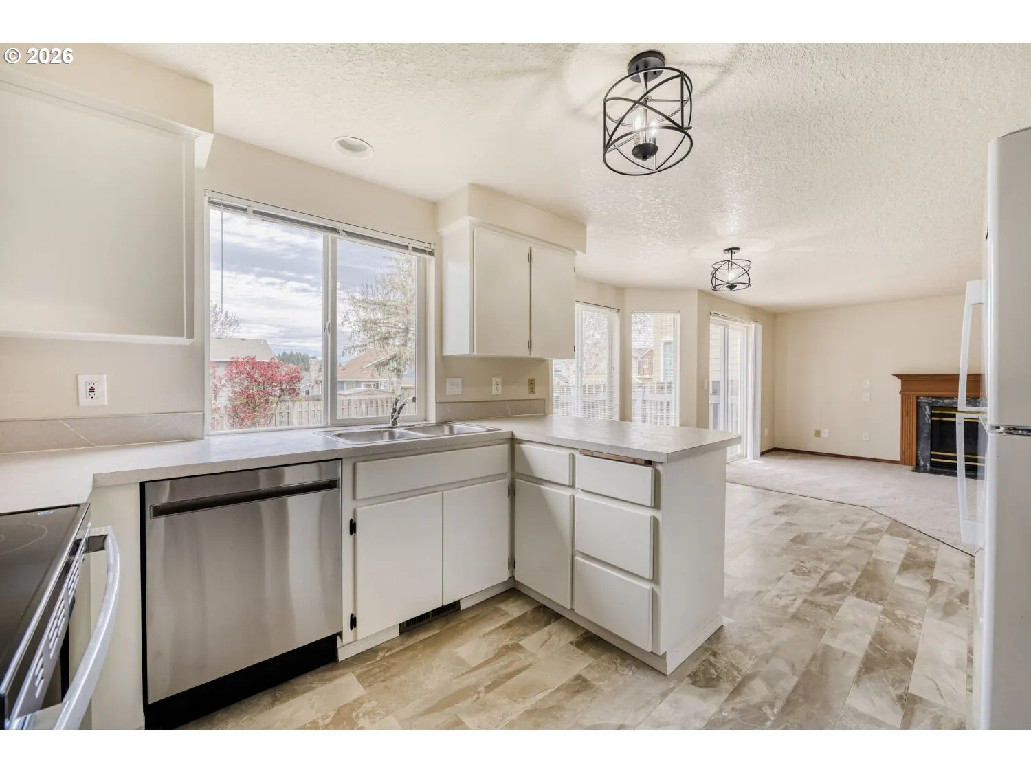 On the market for the first time, this highly sought-after Bull Mountain Meadows plan offers a desirable layout with four bedrooms, large room sizes, and numerous vinyl windows and skylights for great natural light. It’s been meticulously maintained and thoughtfully updated with no detail overlooked. Highlights include a brand-new composition roof, fiber cement siding, all-new flooring, new fixtures, recent water heater, and more! Open-concept kitchen offers new countertops, freshly painted white cabinets, new flooring, appliances including new SS dishwasher and range, and a bayed dining nook. The kitchen is open to the family room, featuring a gas fireplace and slider to the deck and backyard beyond. Deluxe primary suite includes vaulted ceilings, walk-in closet, skylight, updated vanity with dual sinks, and walk-in shower. There are three more generously sized bedrooms upstairs, plus a second updated full bathroom and convenient laundry closet. Great lot with fenced backyard offering deck, irrigation, and mature landscaping. Unbeatable location, just minutes from Progress Ridge and its outstanding amenities. Great Beaverton schools!