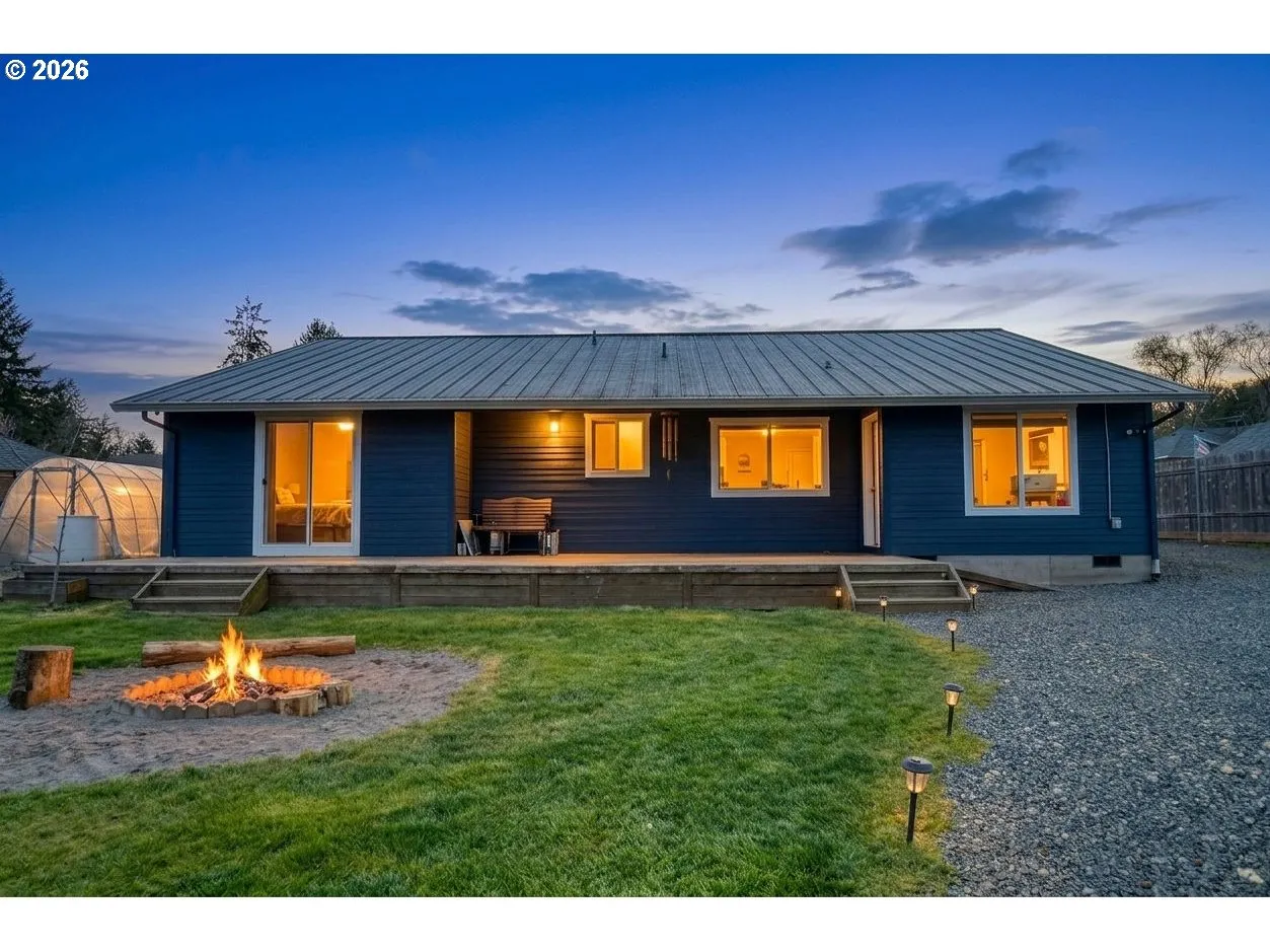 On over 10k square foot lot, this urban farm offers a full set up to meet all your needs. Covered front porch. Tile Entry. Large living/dining/kitchen concept. Kitchen features travertine countertops, tile backsplash, and eating bar. Large family room for separate entertaining space and separate minisplit to ensure adequate heating and cooling. Primary features walk in closet and sliding glass door access to deck. Primary bath with extensive tile work and dual shower heads. 2 well appointed bedrooms. Direct access to fenced backyard from dining room to paritialy covered back deck. Chicken coop ample for any brood. Additional hoop house for your year round gardening needs. The separate shop/garage is expansive. A large tall bay for RV Storage and upstairs finished space for your imagination. Long gravel driveway to accommodate multiple vehicles and direct access to shop. Updated vinyl windows, updated furnace, air conditioning, and plug in ready for generator. Metal Roof on home and Composition Roof on shop. Shown by appointment only.