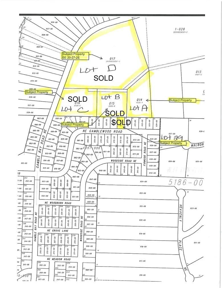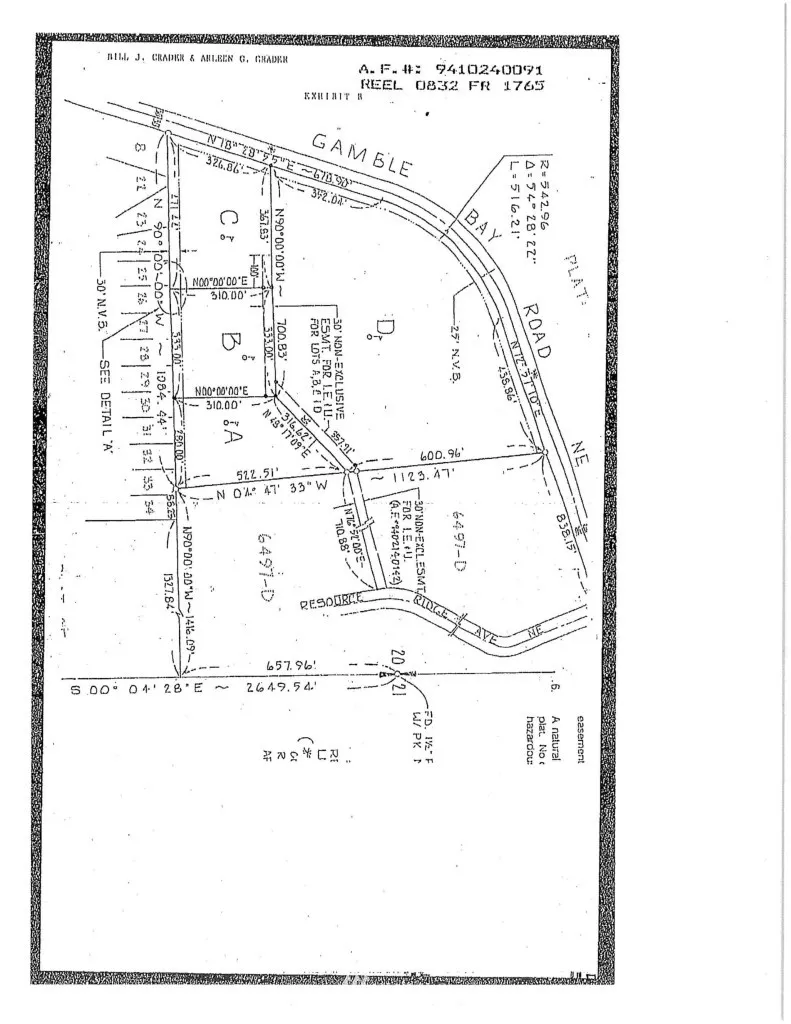 +"Directions": "Bond Road to Hwy 104, right on Gamble Bay Road, right onto Resource Ridge, follow to directional arrow that indicates easement access to property. Not possible to drive onto lot at this time."