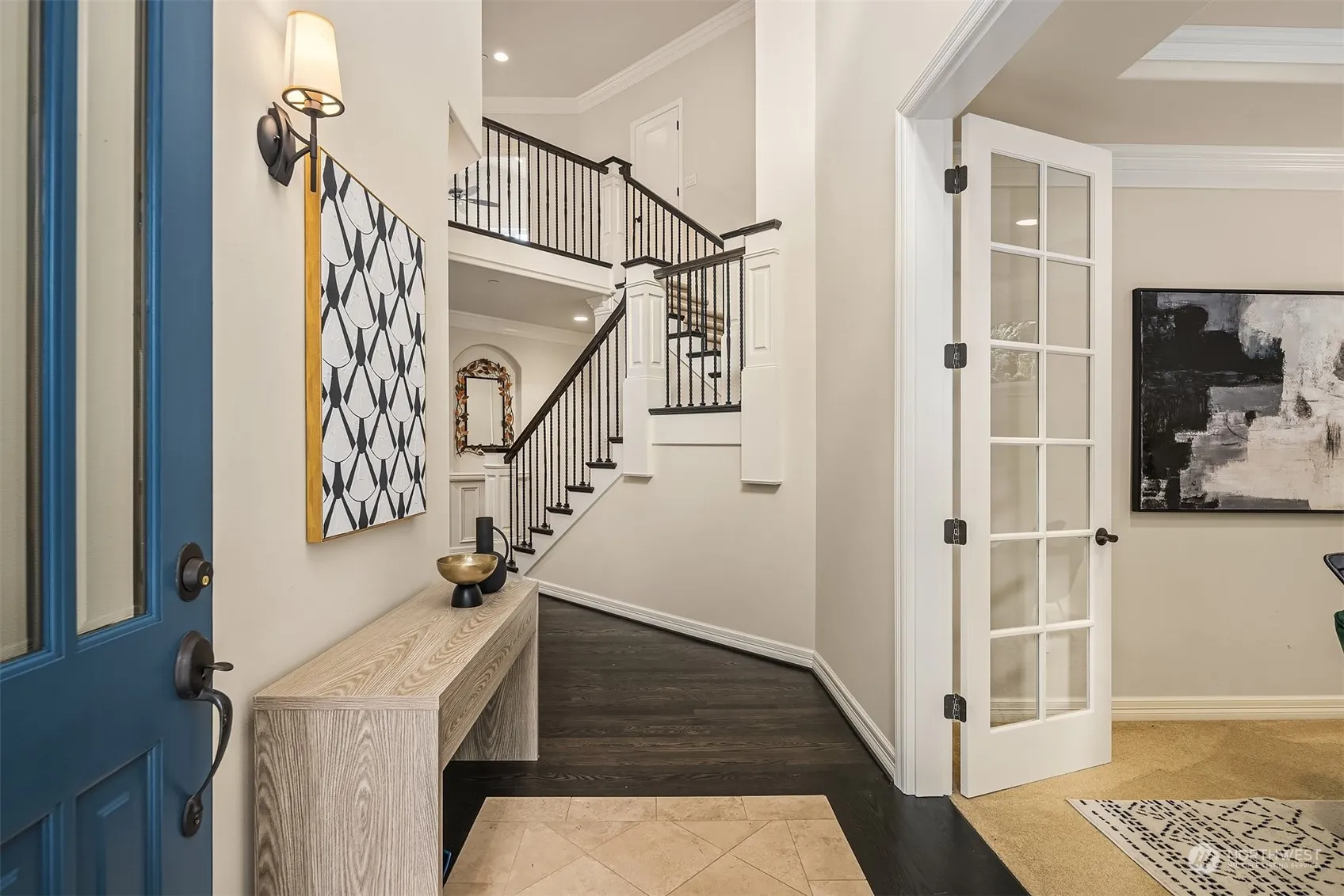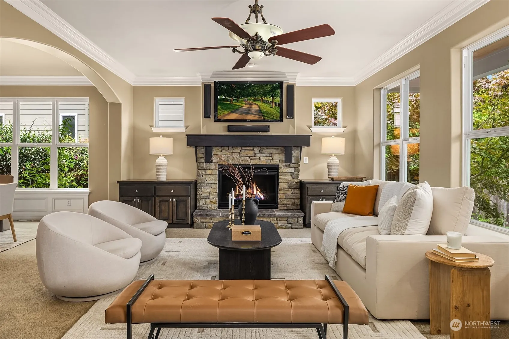 Private, gated community in the heart of Newport Hills. This beautifully designed custom home has it all: 4 bedrooms, 2.5 baths, light and bright upper level bonus room, spacious main-floor den and custom wine room. Flexible floor plan features a chef’s kitchen w/eat-up island, pantry and updated appliances. Family room boasts a gas fireplace, beautiful built-in shelves and views to backyard retreat. Beautifully appointed main level Primary suite offers a cozy double sided gas fireplace and features a luxurious primary bath w/large walk in closet. Backyard is a fully fenced gardening paradise w/new built in kitchen and gas fire pit. Meticulous attention to detail and pride of ownership is evident throughout. Welcome home to Bellevue Park.