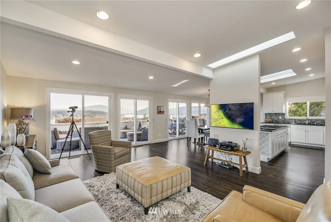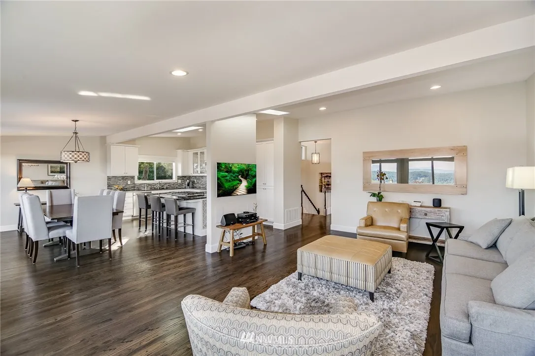 +"PublicRemarks": "Timeless contemporary w/gracious living & lush landscape. Featuring all new exterior paint, new roof & decking. VIEWS are built-in. Featuring 4bd/2.75ba w/hrdwds throughout main. Updated for today's lifestyle, the kitchen is outfitted w/expansive island for chef style cooking. Formal spaces & informal areas combine to create the perfect layout. Fully finished basement w/guest suite, bonus & abundant storage. Walls of windows offer stunning views of Lake Sammamish, Mountains & endless sunsets."