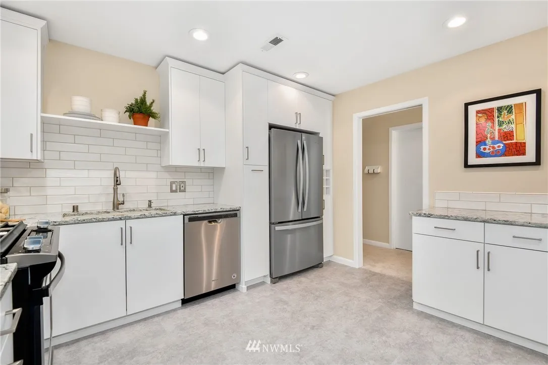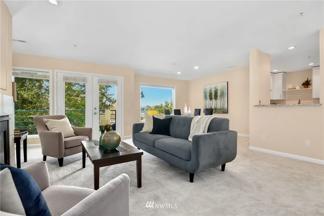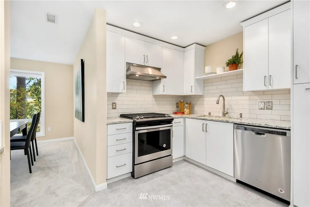 +"PublicRemarks": "Totally remodeled 3 bed, 2.5 bath condo in DT Bellevue. One level, bright open floor plan w/lake & Olympic MT views. White kitchen cabinets, new carpet & paint, gas cook top, utility room w/full size washer/dryer. Huge master suite w/soaking tub and a spa shower. Generous closet and storage space. 2 secured parking spaces,elevator, private storage room. Just steps to dining, shopping, parks and trails! Award winning Bellevue schools!"
