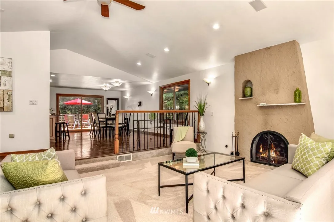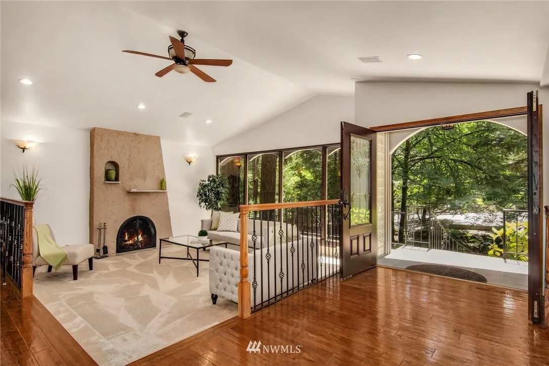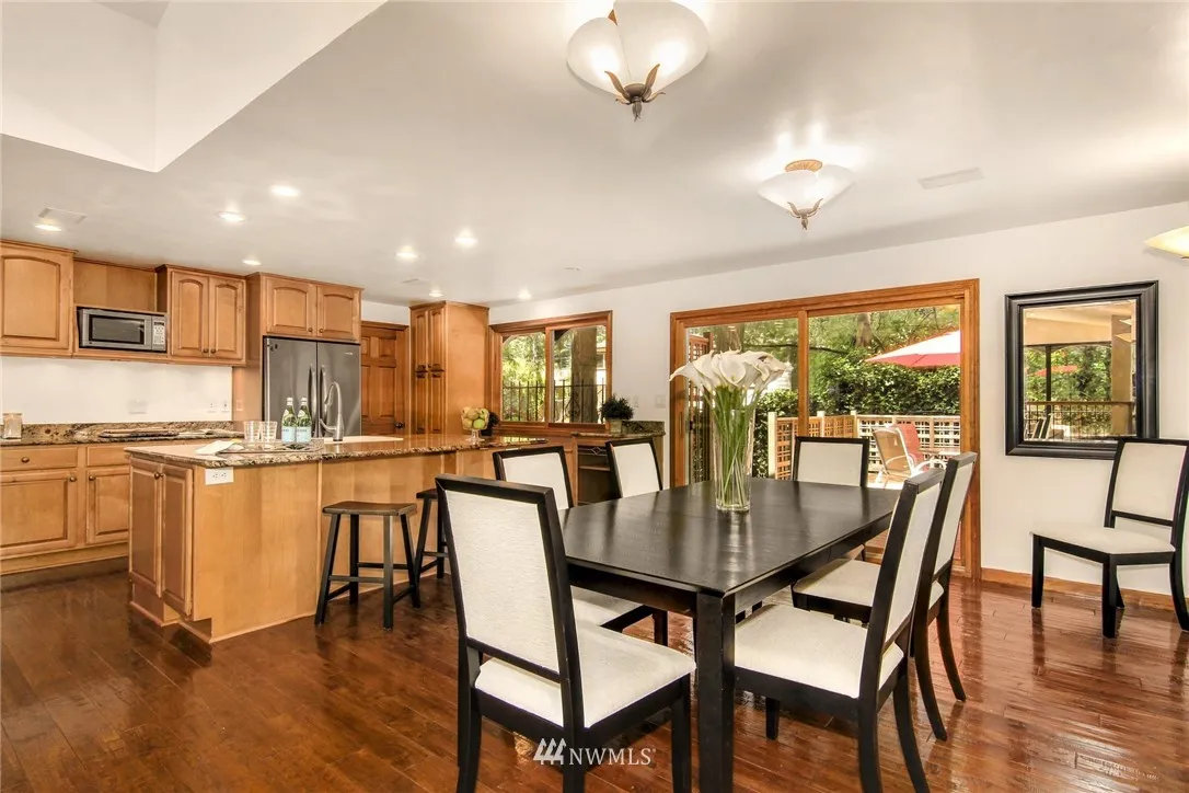 +"PublicRemarks": "Smartly tucked away in the Phantom Lake woods yet centrally positioned in close proximity to Bellevue's numerous amenities. Traverse an impressive bridge over a seasonal creek to seek refuge in this unique 4 bedroom haven. Open kitchen w/vast island, while a 6 burner Dacor gas range complement the suite of SS appliances & open living/dining room. Spacious lower level features 2nd fireplace & 5.1 sound system/projector/100-inch screen. Massive 4 car garage w/workbench and large back deck."