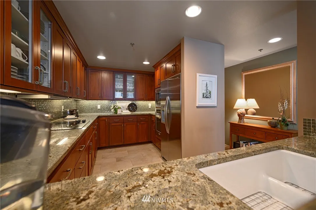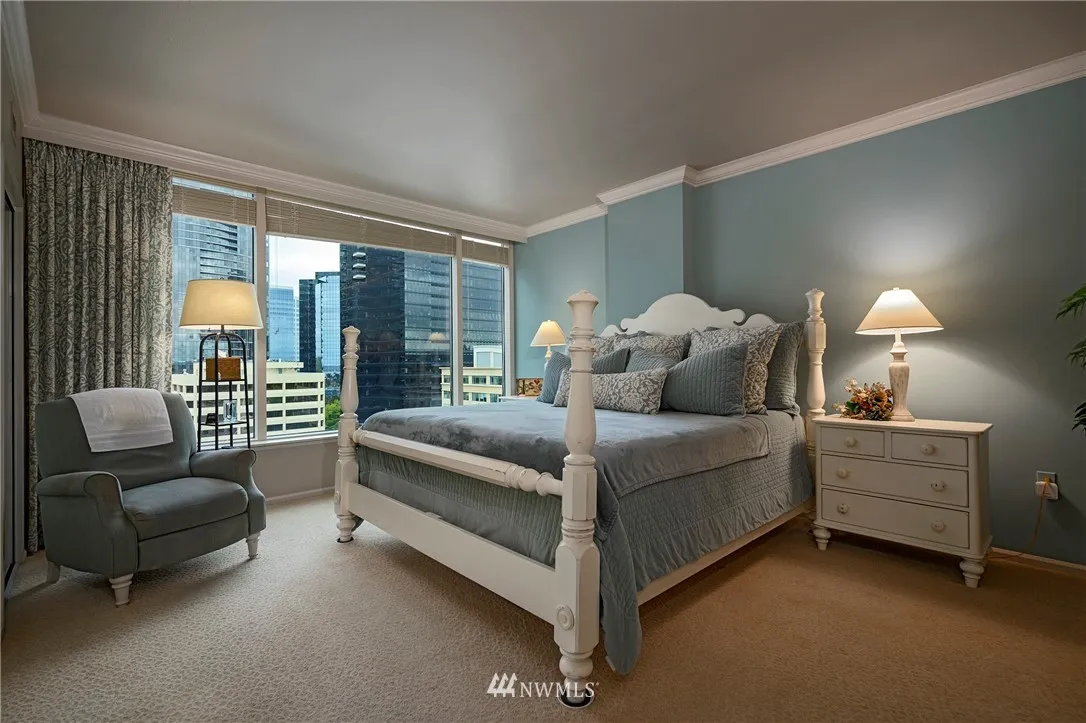 +"PublicRemarks": "MOTIVATED SELLER! PLEASE BRING OFFER. Spacious open concept 2BR,2BA+Den condo w/ over-sized windows & city views. Expansive dazzling remodeled kitchen w/ cherry cabinets & newer SS appliances. Impressive master bedroom w/ 5 piece ensuite bath including Jacuzzi soaking tub. Cozy guest BR w/ balcony access & views of Seattle, Mt & DT park. Den/Bonus room w/ French doors & generous closet. Abundant storage & shelving built-ins throughout the unit by California Closets. 1 parking & 1 storage."