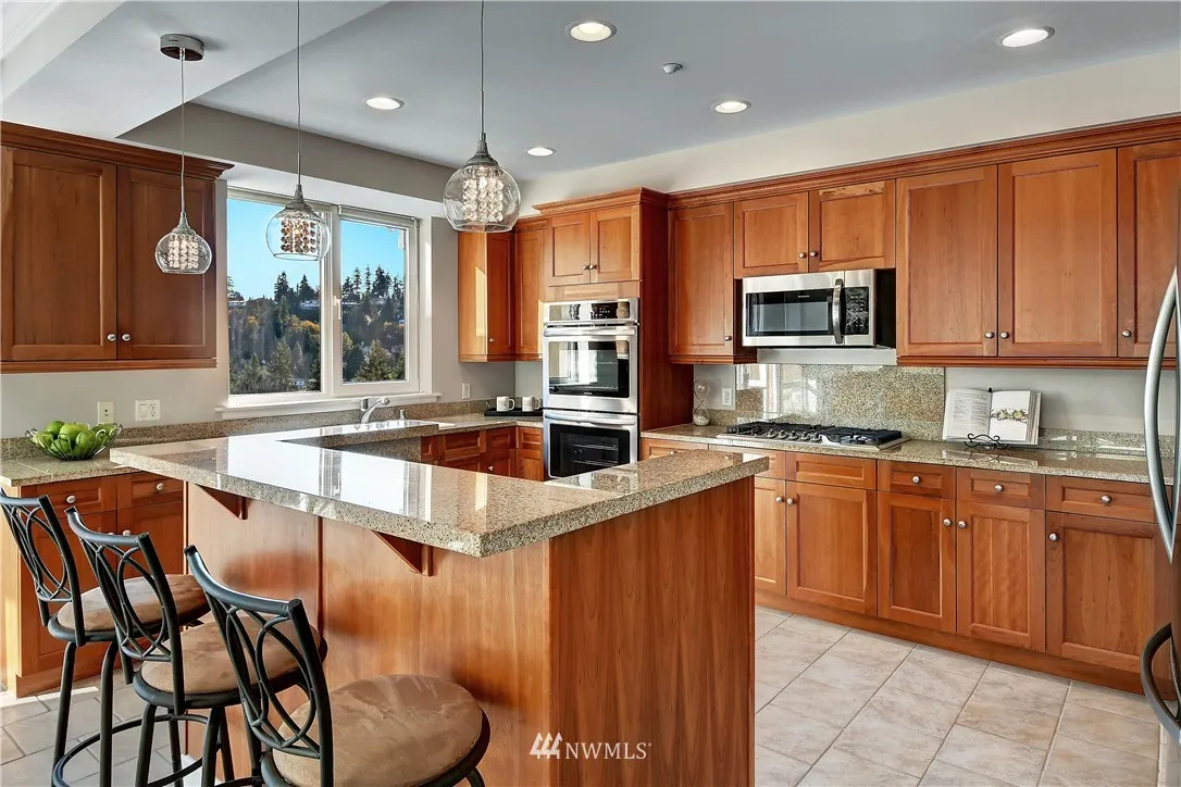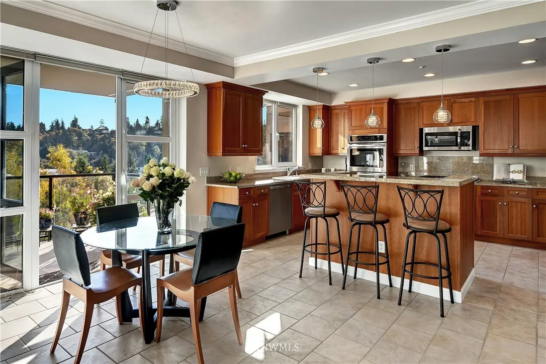 +"PublicRemarks": "Location, location, location! This is your opportunity to live amongst the best restaurants, shops & parks in Bellevue. Freshly remodeled & move-in ready 2 bedroom, 2 bath + den floor plan with large living spaces, high ceilings and walls of glass. Dreamy SW exposure with views of Meydenbauer Bay + a large private deck for dining al fresco. New SS appliances, granite counters & breakfast bar. Fresh paint, designer lighting & decor. 2 car secure parking, ample storage and A/C. Welcome home!"