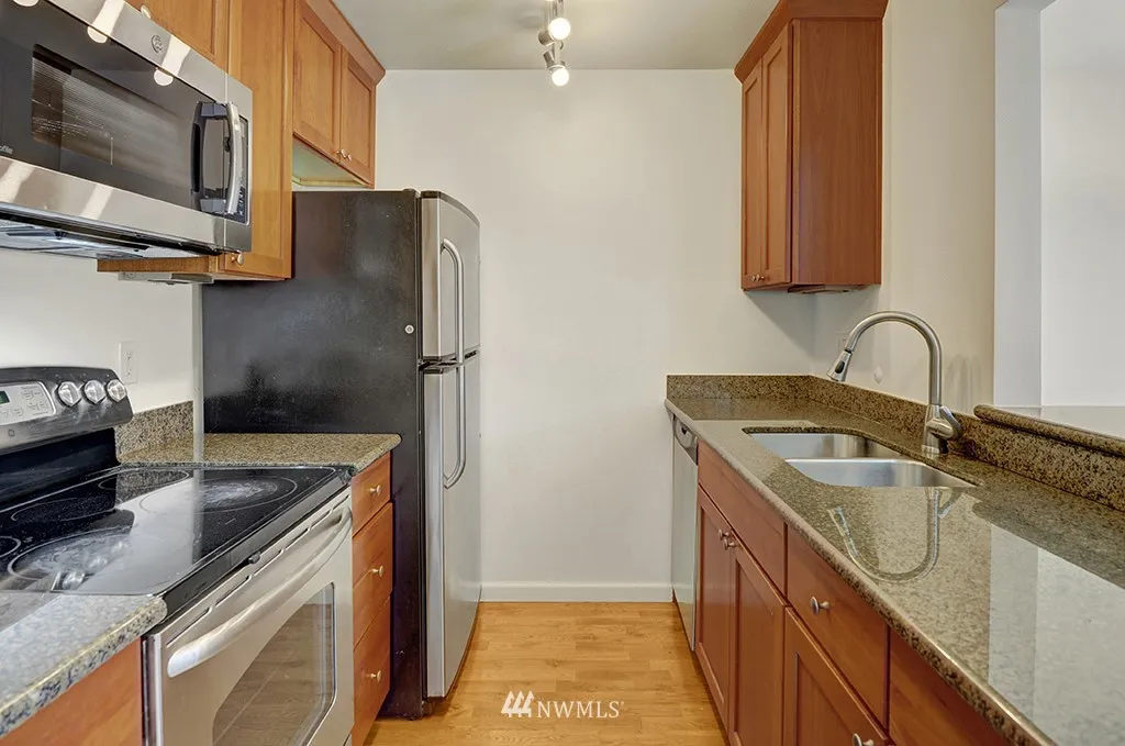 +"PublicRemarks": "Move-in ready, Minutest from Bellevue downtown & Microsoft campus, spacious 2 bedroom top floor end unit, new carpet, new microwave, new washer/dryer, hardwood floor, stainless appliances, private balcony off living room, spacious master w/walk-in closet, updated kitchen, granite countertop, 2 assigned parking spaces, and no rental cap."