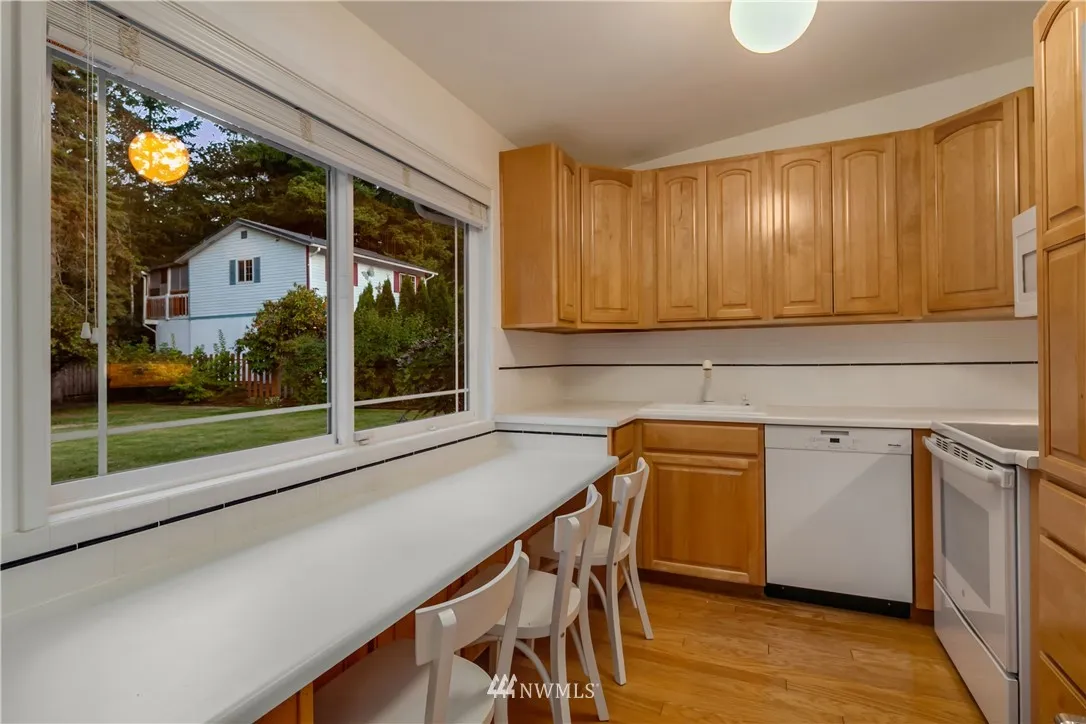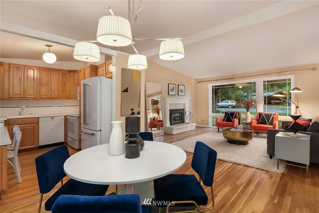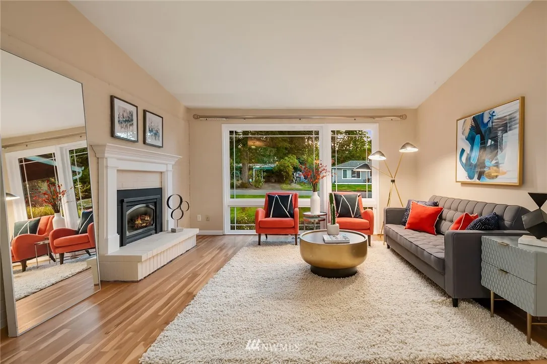 Mid-century living in a fantastic Bellevue location. Sun-filled living room w/vaulted ceilings, gas fp, and\r\n