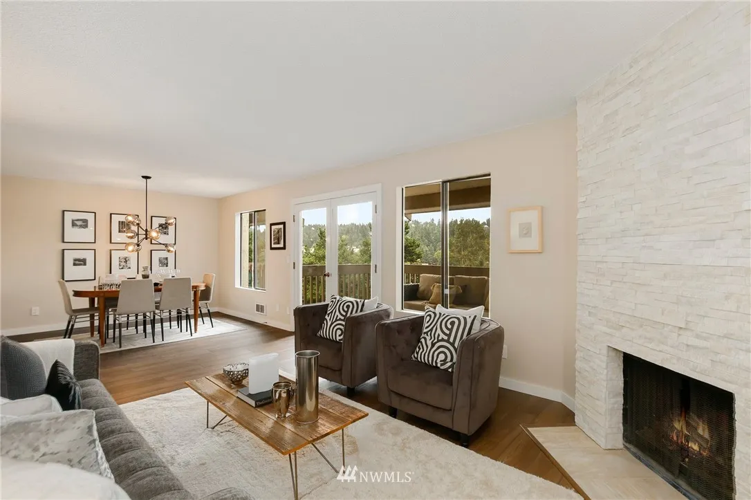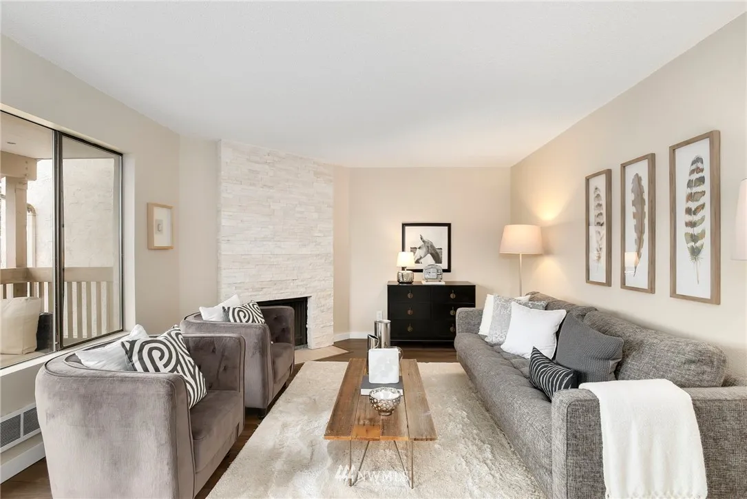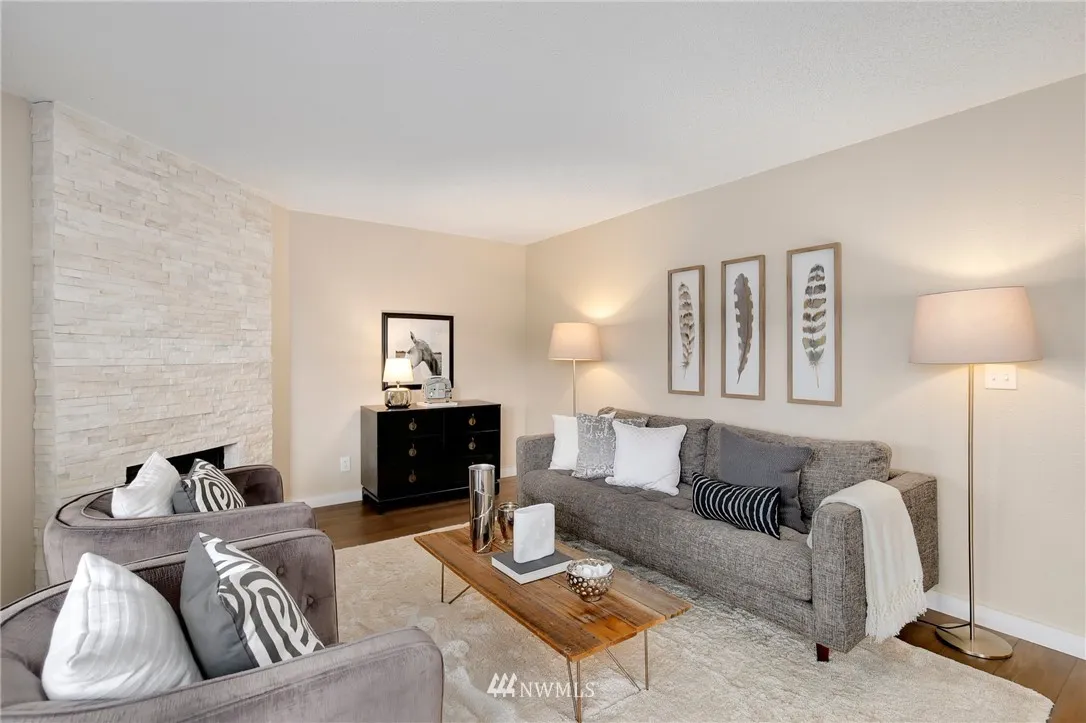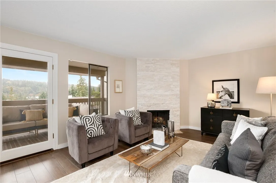 +"PublicRemarks": "Trendy, remodeled top floor condo @ The Ridge Bellevue! Stunning floor-to-ceiling white rock FP, UPDATED kitchen w/quartz countertops, new cabinets, SS appl. New floors throughout. Master suite w/walk-in closet & 3/4 bath. Guest BR, hall bath & in-unit laundry. Individual garage w/storage room & assigned parking. Covered Patio. Amenities include pool, hot tub & clubhouse. Minutes to 520, DT Bellevue, DT Kirkland & Seattle. EZ commute to MSFT, GOOG & AMZN. NO rental cap; NO special assessments!"