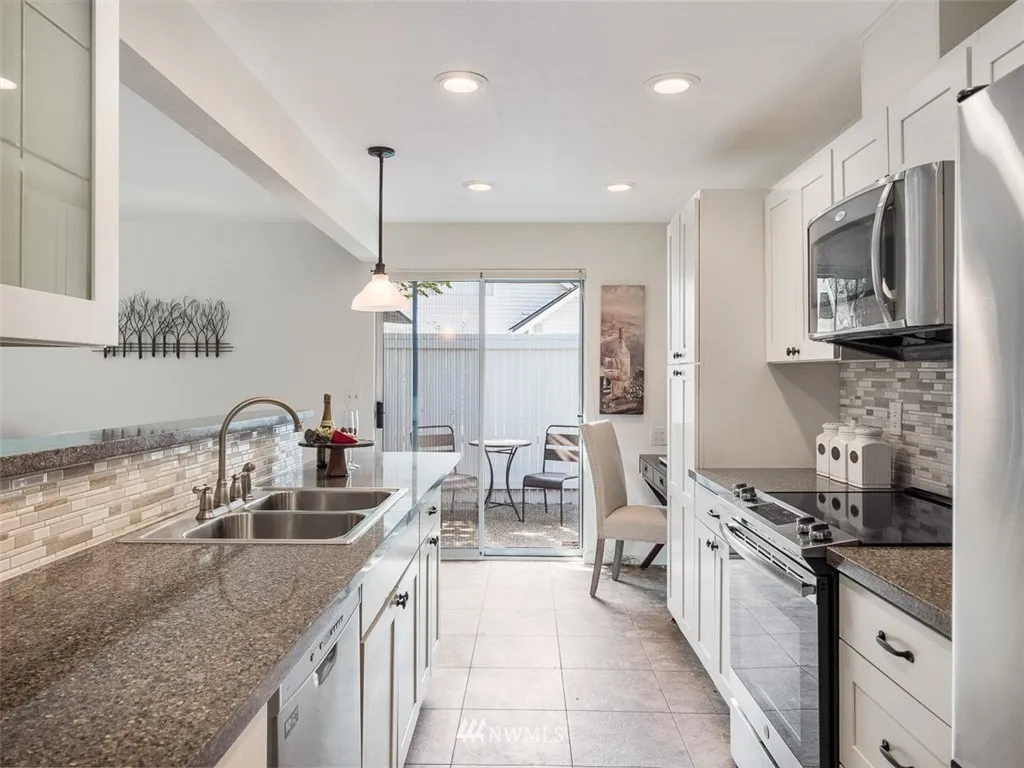 +"PublicRemarks": "Charming condo in sought after Somerset Creek. Rambler style end unit in peaceful park-like setting. Separate living, dining rooms. Open concept Family room and Remodeled Kitchen; Granite, Stainless, higher end appliances. Vaulted ceilings. Hardwood floors. Fresh interior designer paint. Oversized 2 car garage. Stable, well run HOA. Sport Court, Guest Parking. Award winning Bellevue Schools. Easy access to I-90 Seattle or Bellevue."