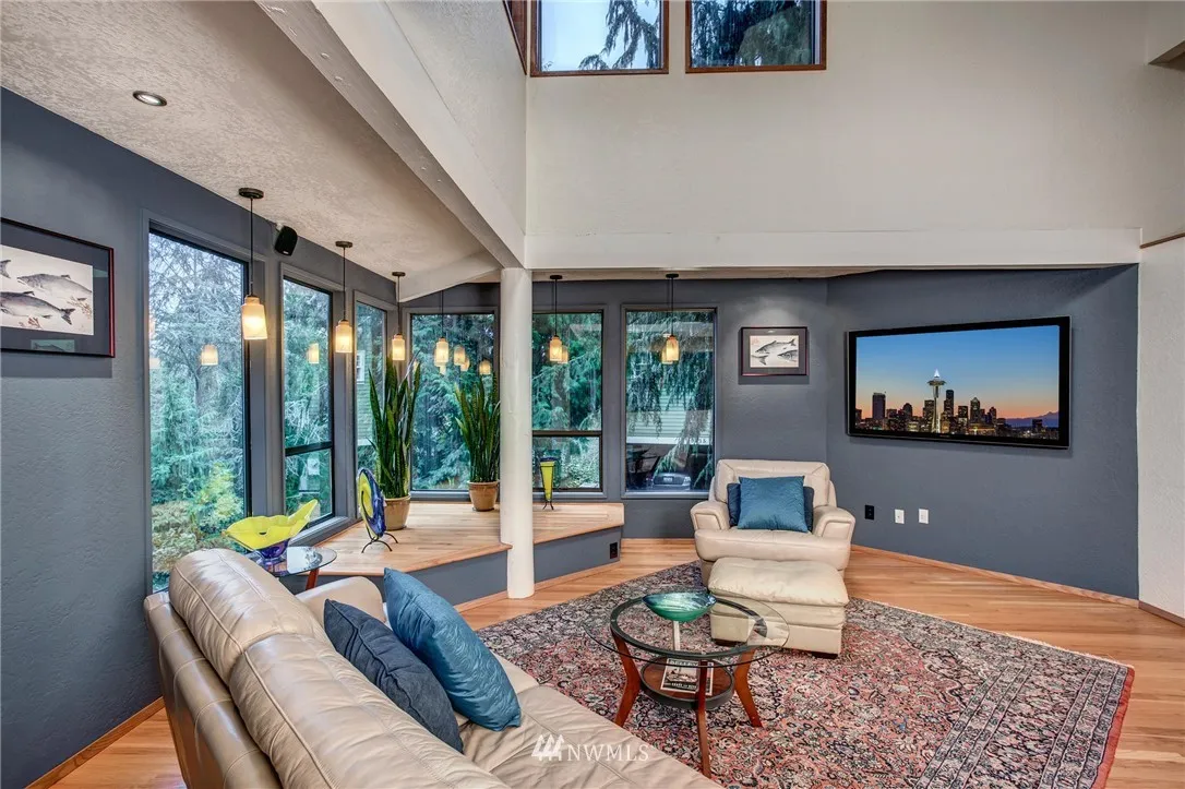 +"PublicRemarks": "West Bellevue Serenity. Down a wooded road, your Pacific Northwest Contemporary sits nestled amongst mature woodland. 4-story, 3BD, 2.5BTH, with extensive vaulted ceilings and windows and maximum exposure to lush setting. Just minutes from downtown Bellevue with easy access to major freeways. Lot includes wired outbuilding for storage or studio, multiple decks, backyard bbq deck and carport. Always a peaceful end to the day coming home here. Thanks for looking."