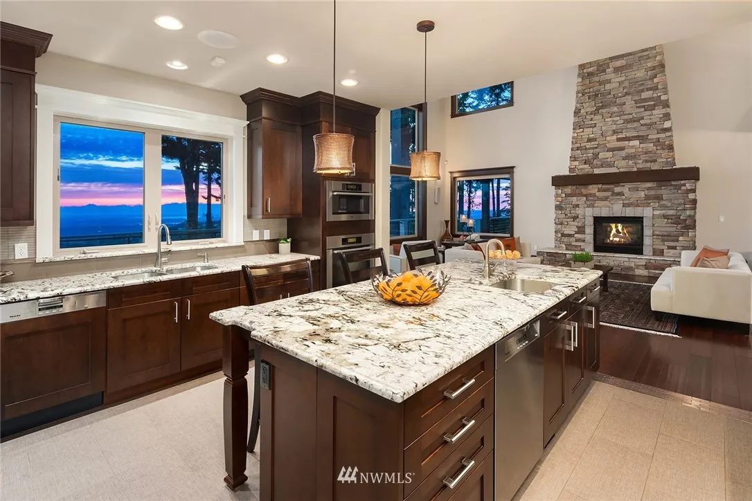 +"PublicRemarks": "Welcome to The Pinnacle - a sought-after neighborhood! Custom built home w/ luxurious finishes & incredible lake, sound, mountain & city views! Enjoy vaulted ceilings, huge windows & a spacious floor plan w/excellent entertaining spaces including great room w/ dining space, high ceilings & fantastic views. Chef’s kitchen, theater, den w/ fireplace, lovely master suite, huge rec room, exercise room & more! Smart home tech, elevator & 3-car garage. Huge decks, incredible privacy & stunning views!"